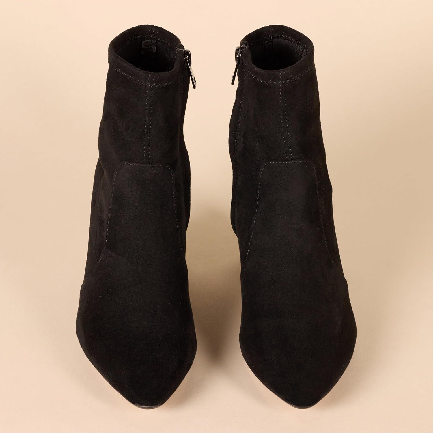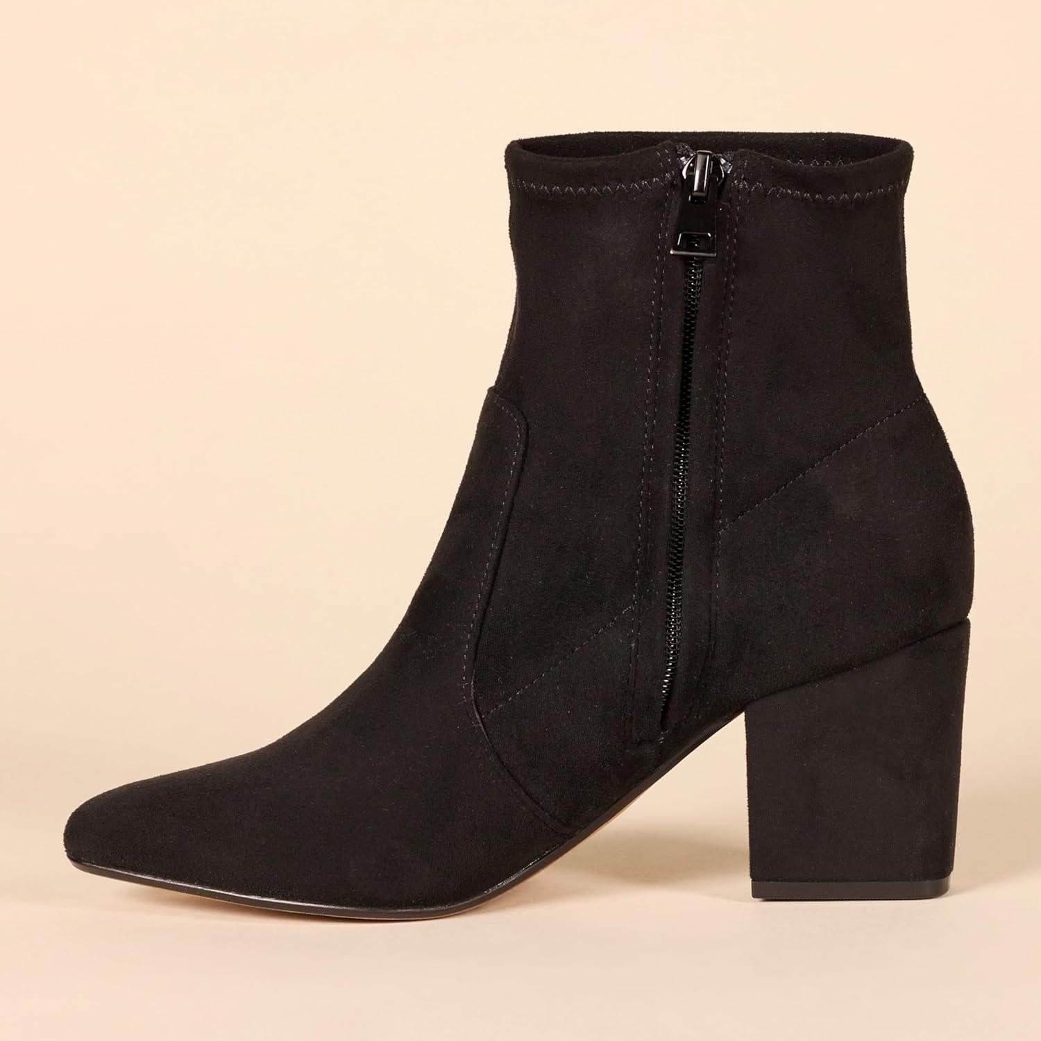 Amazon Essentials Women’s Fitted Stretch Heel Boot(Black Microsuede)