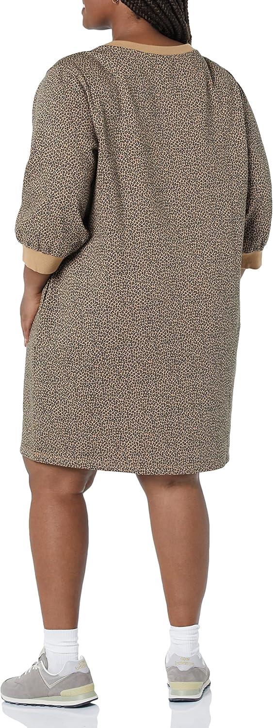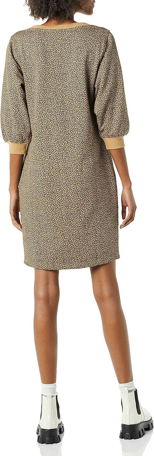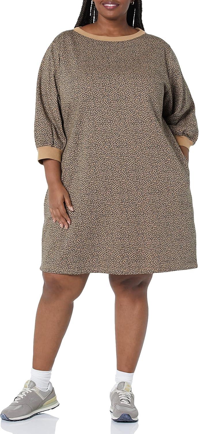 Amazon Essentials Women’s Fleece Blouson Sleeve Boatneck Sweatshirt Dress (Available in Plus Size)(Camel Cheetah)
