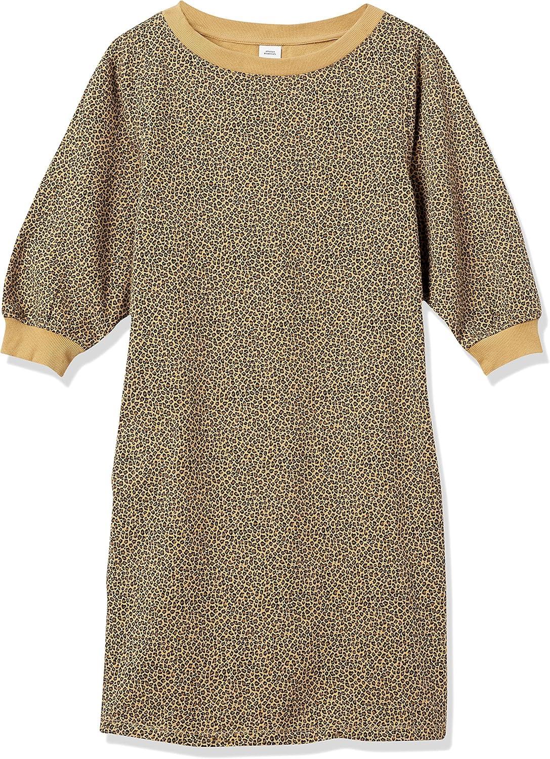 Amazon Essentials Women's Fleece Blouson Sleeve Boatneck Sweatshirt Dress (Available in Plus Size)(Camel Cheetah)