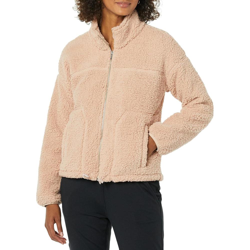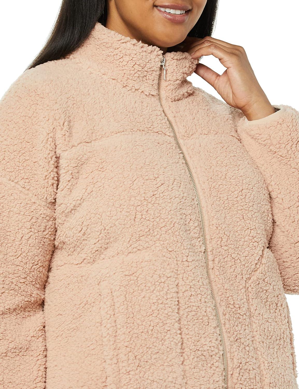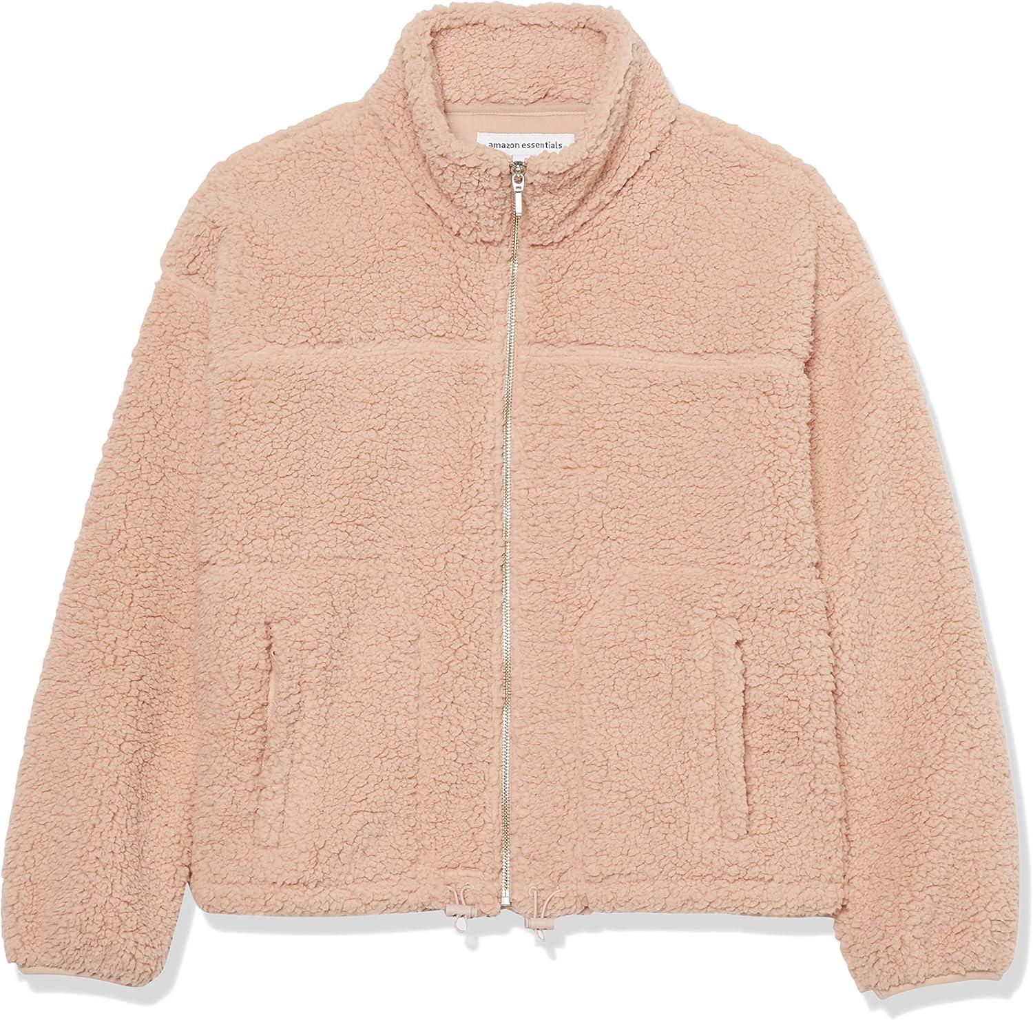 Amazon Essentials Women’s Fleece Zip-Up Sherpa Jacket with Stand Neck(Blush)