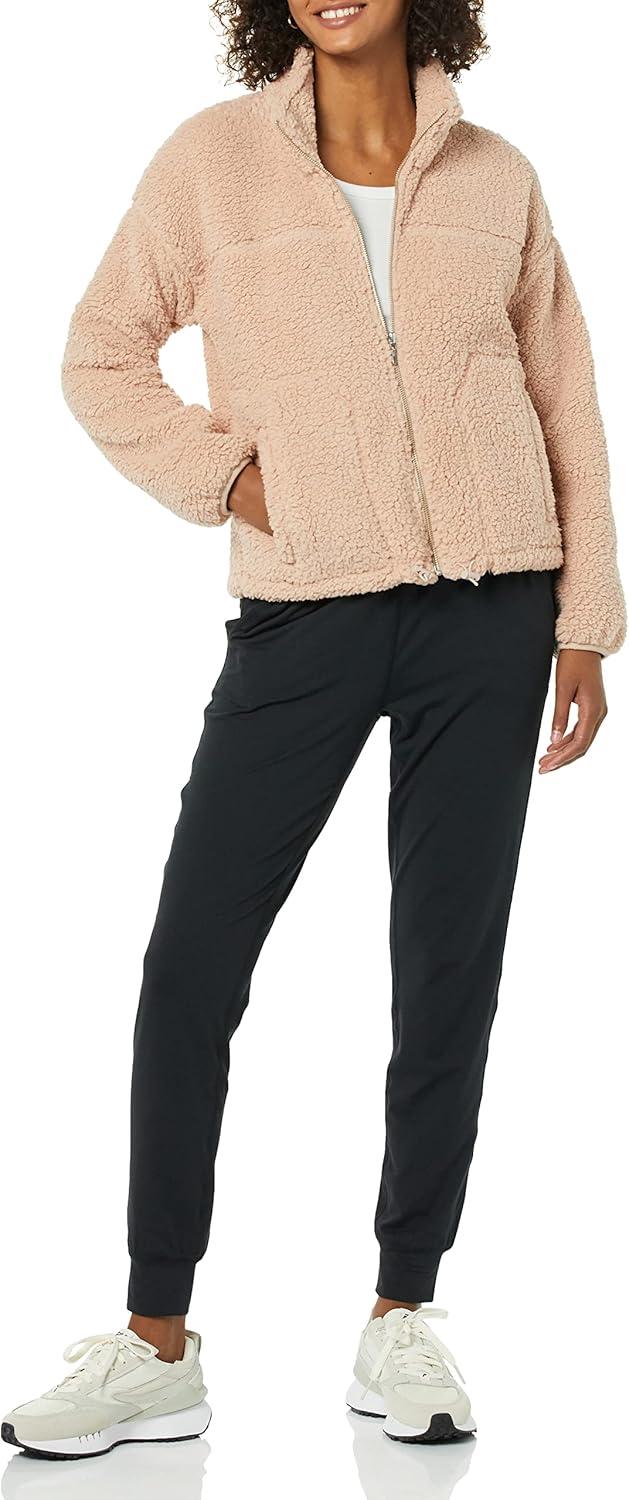 Amazon Essentials Women’s Fleece Zip-Up Sherpa Jacket with Stand Neck(Dark Tan)