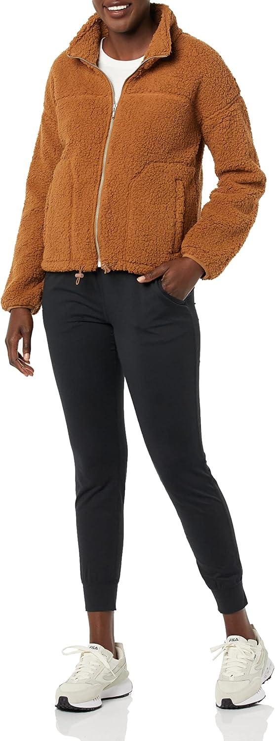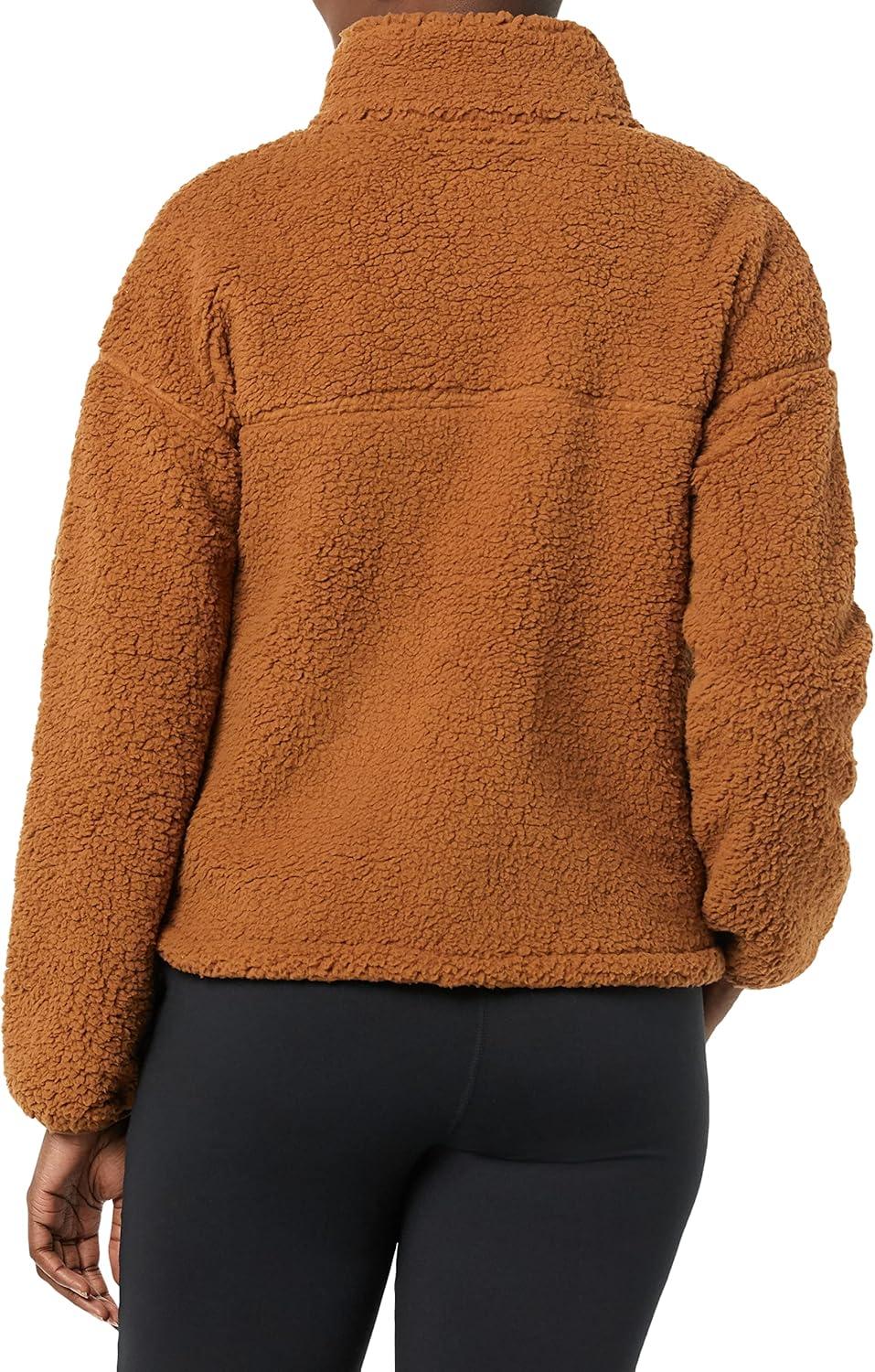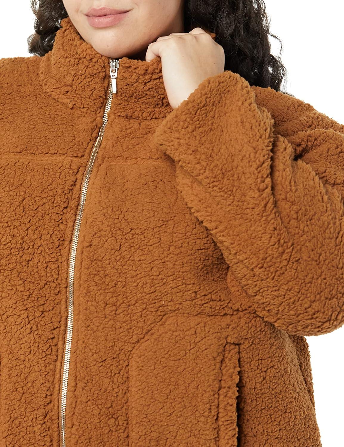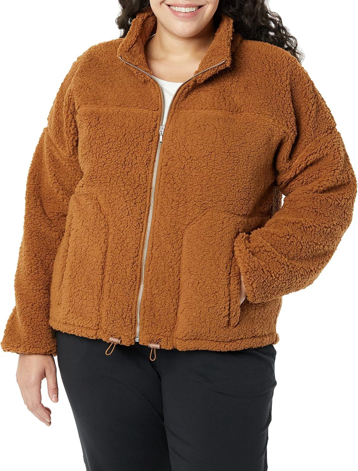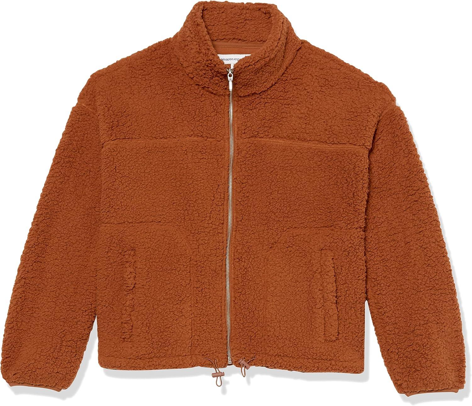 Amazon Essentials Women’s Fleece Zip-Up Sherpa Jacket with Stand Neck(Dark Tan)