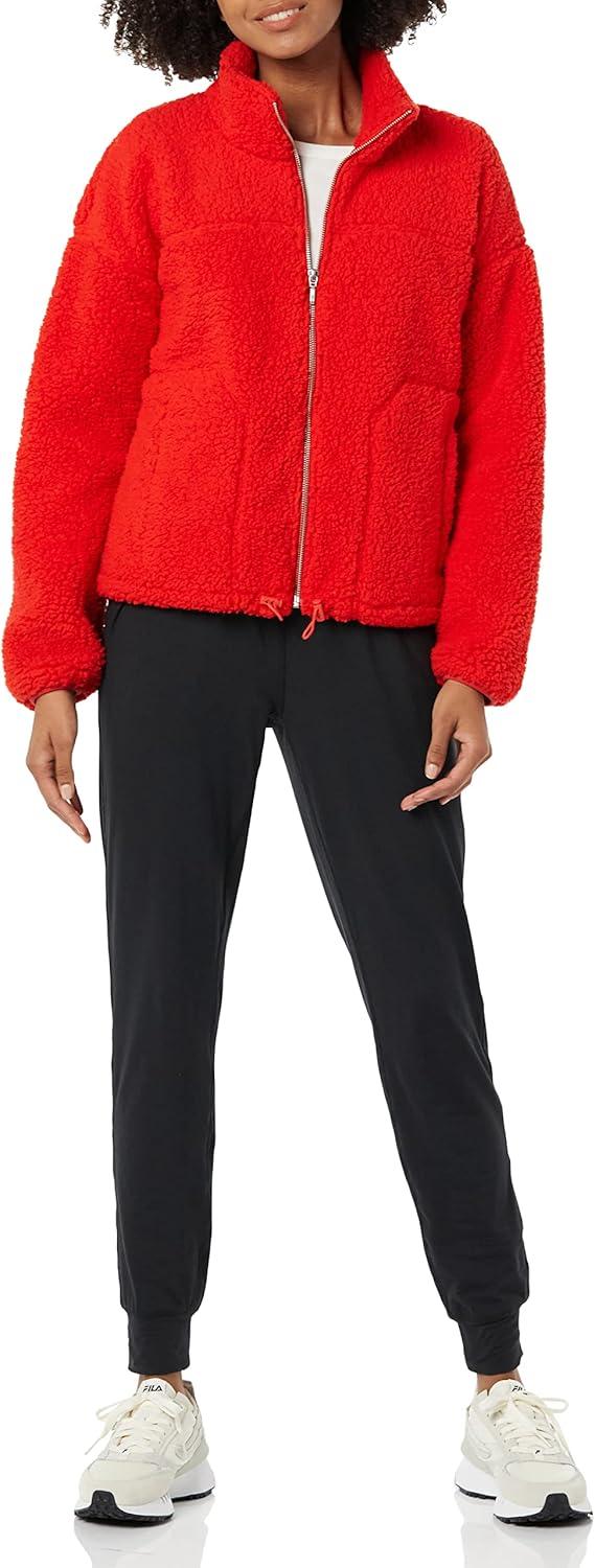 Amazon Essentials Women's Fleece Zip-Up Sherpa Jacket with Stand Neck(Poppy Red)
