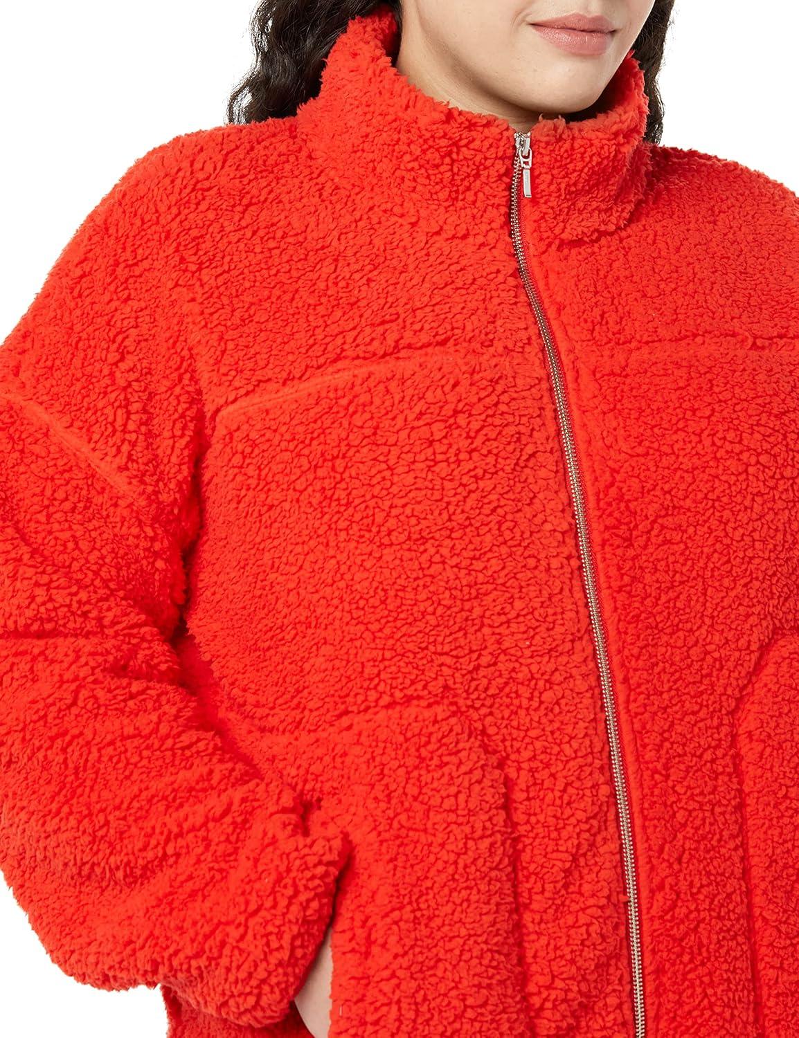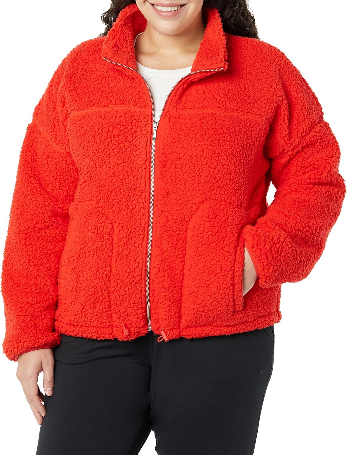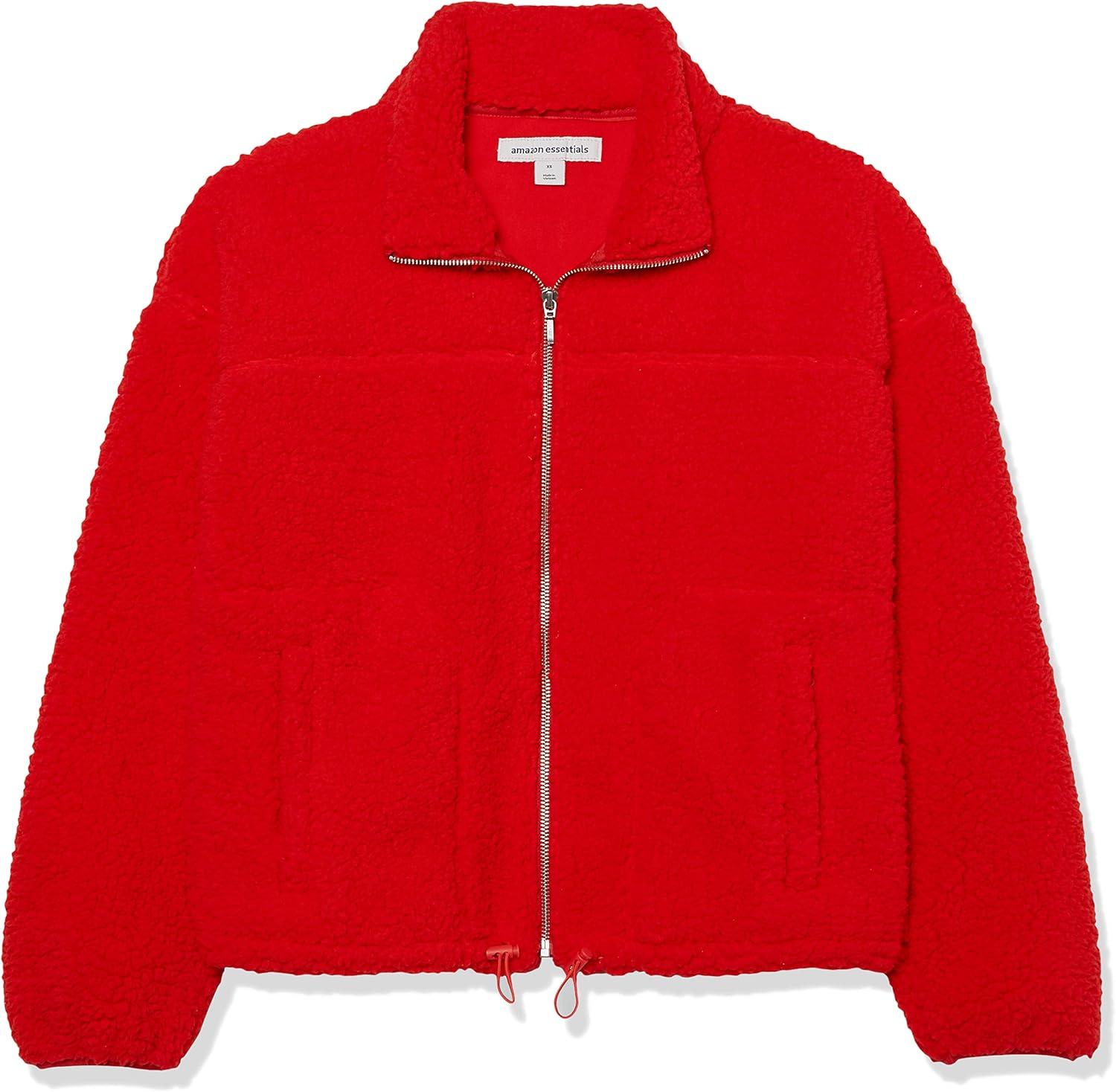 Amazon Essentials Women’s Fleece Zip-Up Sherpa Jacket with Stand Neck(Poppy Red)