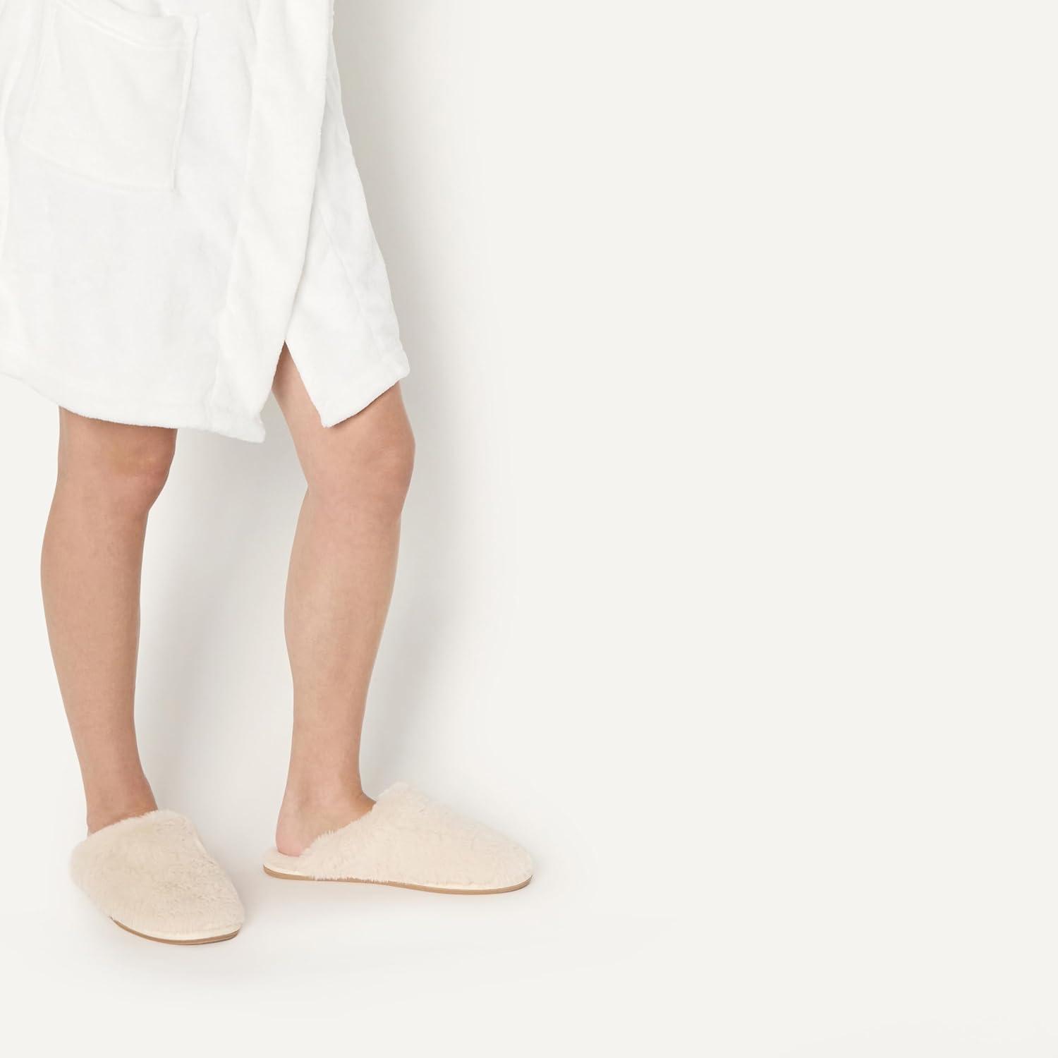 Amazon Essentials womens Fuzzy Plush Slippers(Ivory)