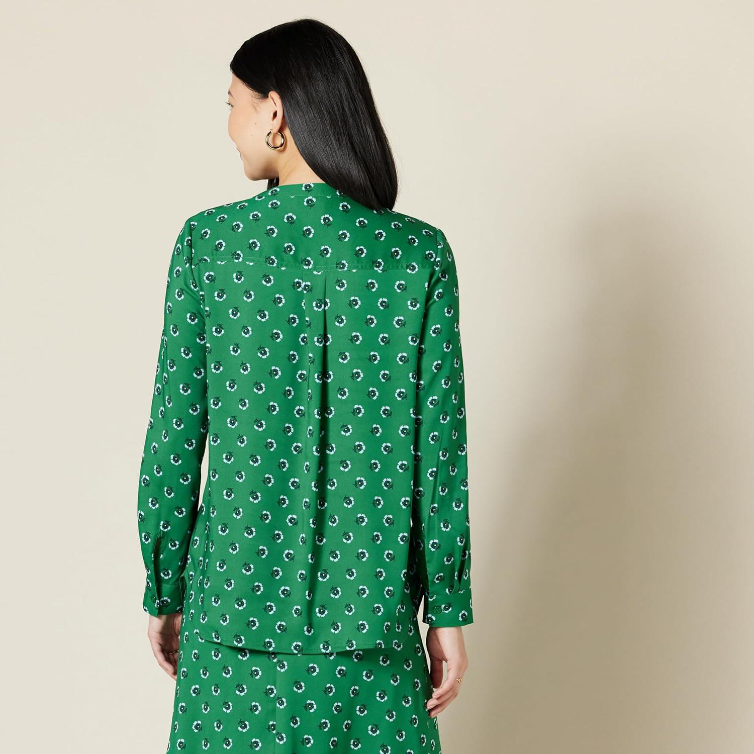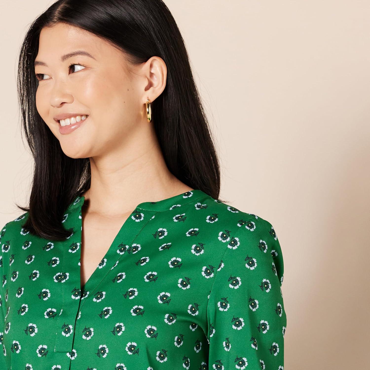 Amazon Essentials Women’s Georgette Long Sleeve Relaxed-Fit Popover Blouse(Green Floral)
