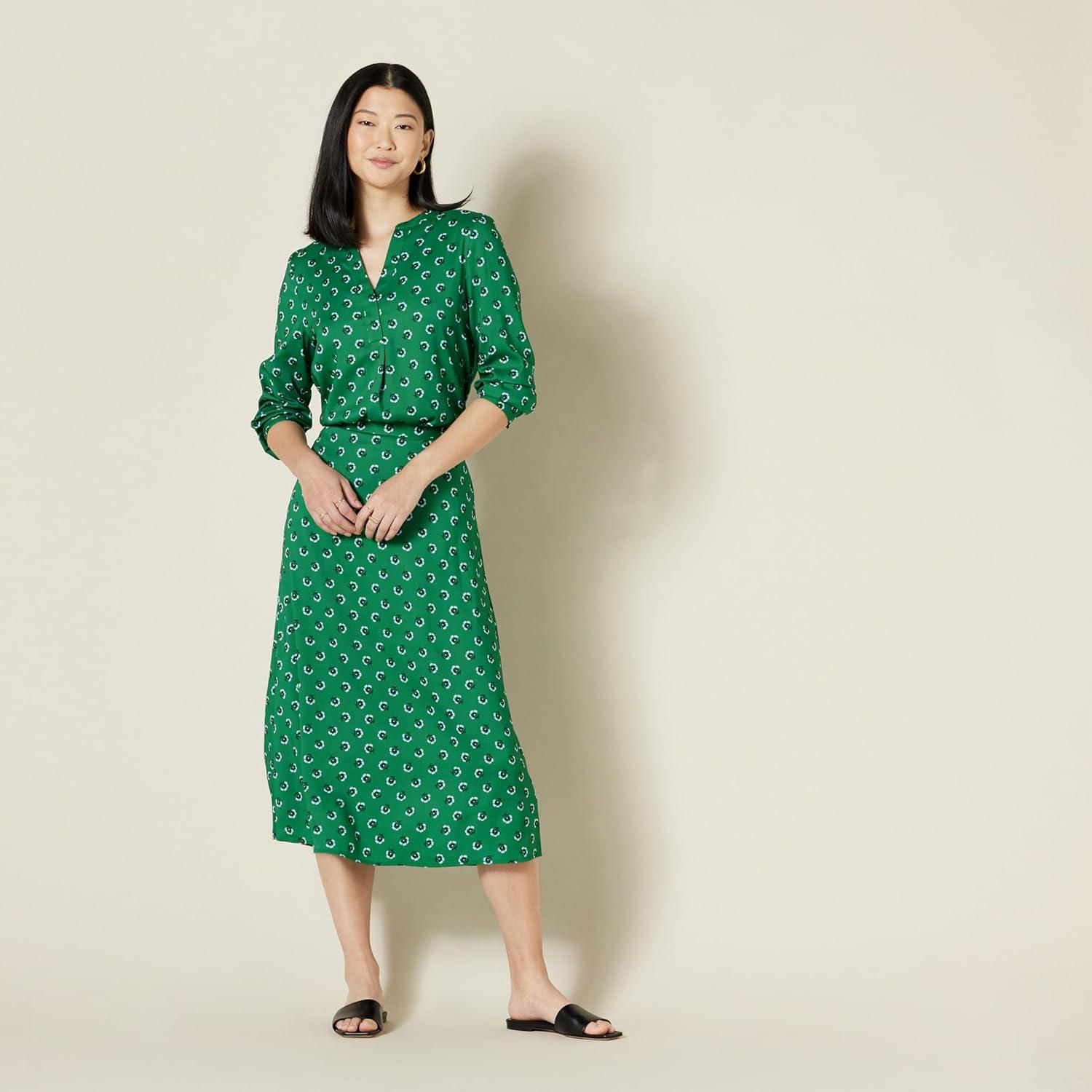 Amazon Essentials Women's Georgette Long Sleeve Relaxed-Fit Popover Blouse(Green Floral)