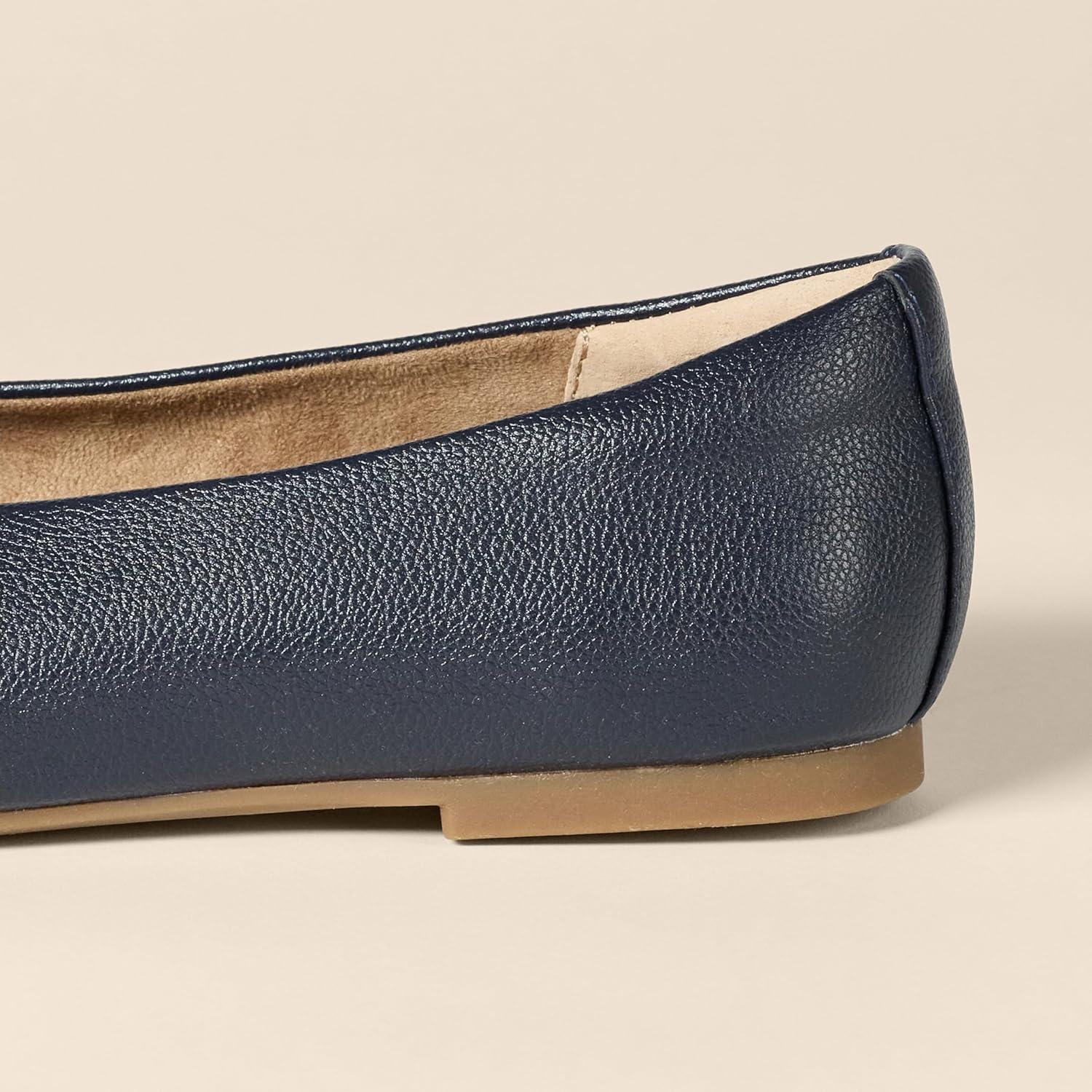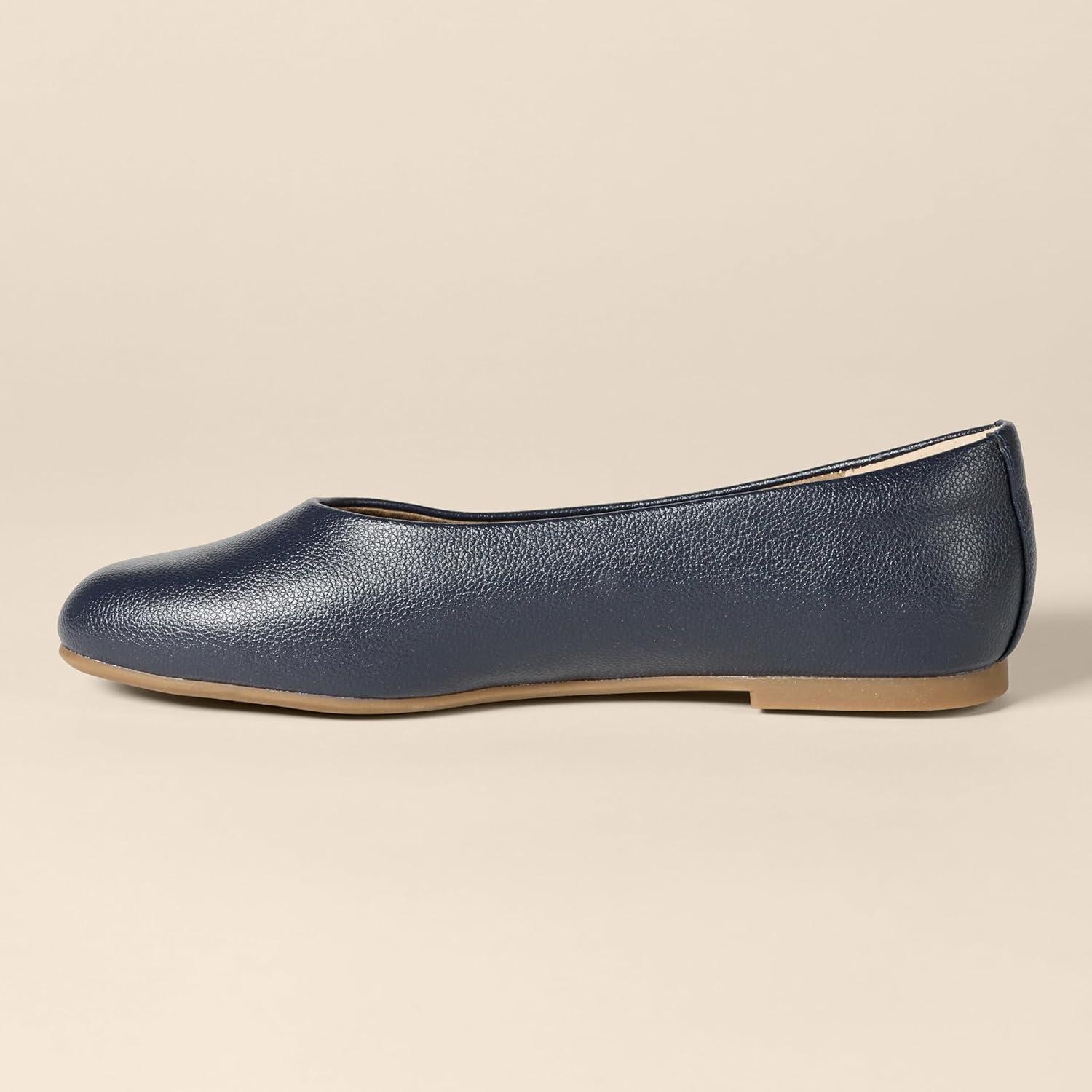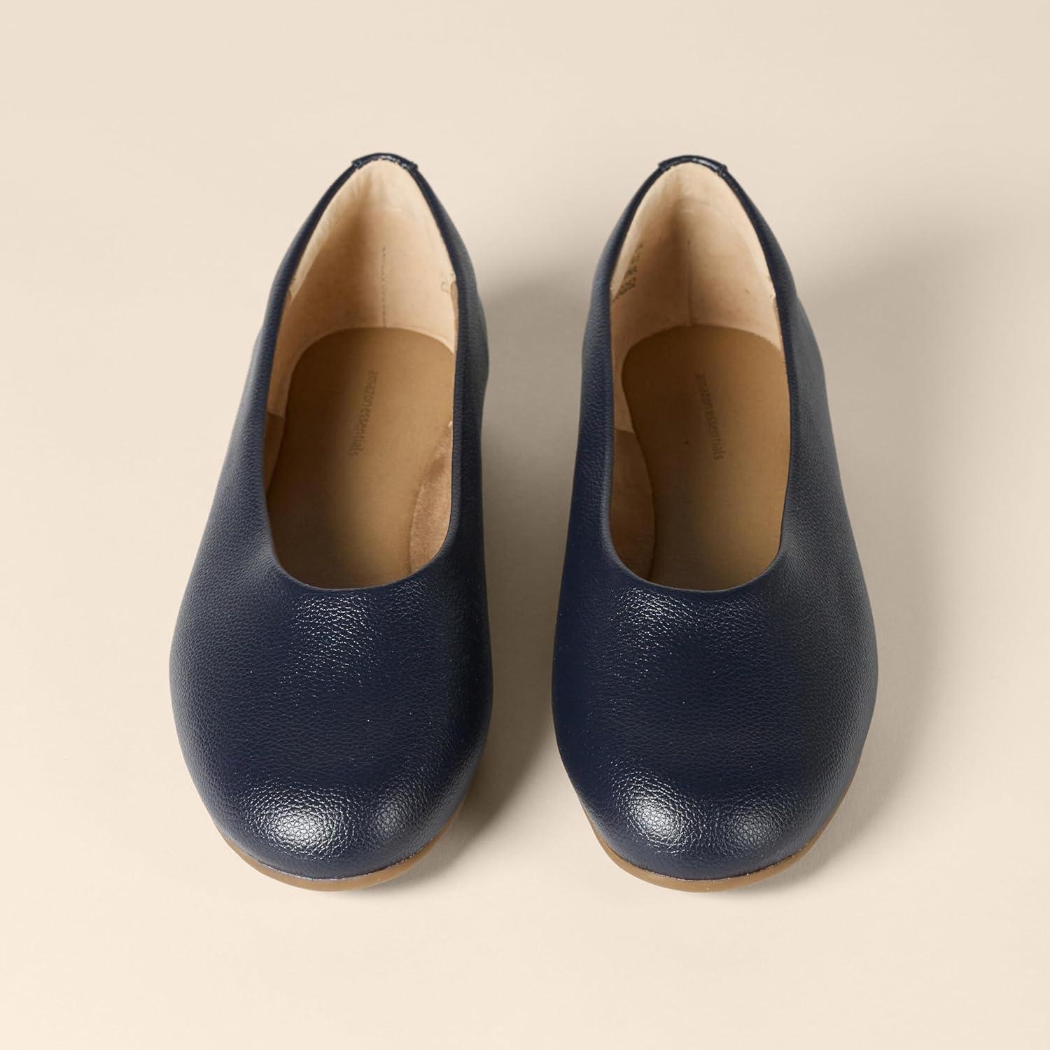 Amazon Essentials Womens Glove Ballet Flats(Navy Faux Leather)