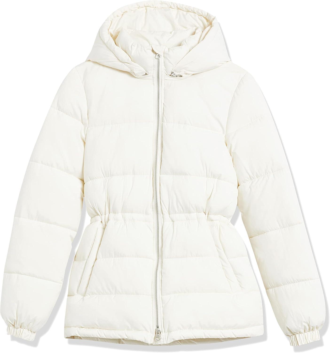 Amazon Essentials Women’s Heavyweight Quilted Hooded Puffer Winter Jacket with Adjustable Waist(Ivory)