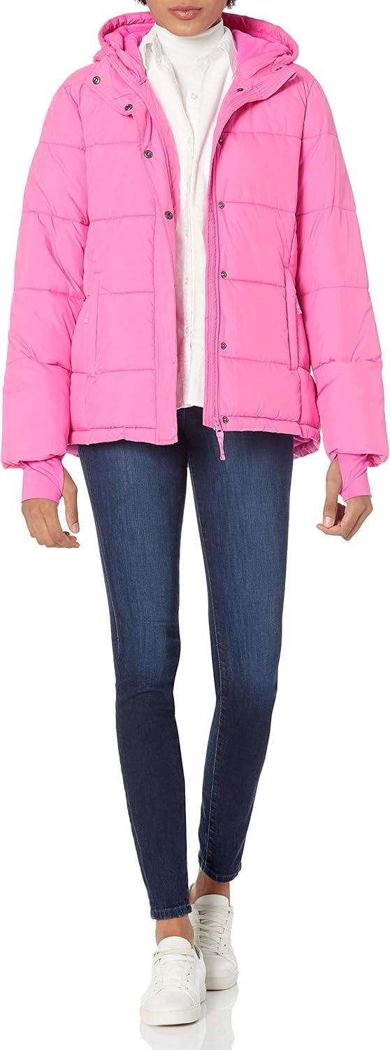 Amazon Essentials Women’s Heavyweight Quilted Long-Sleeve Hooded Puffer Coat (Available in Plus Size)(Neon Pink)
