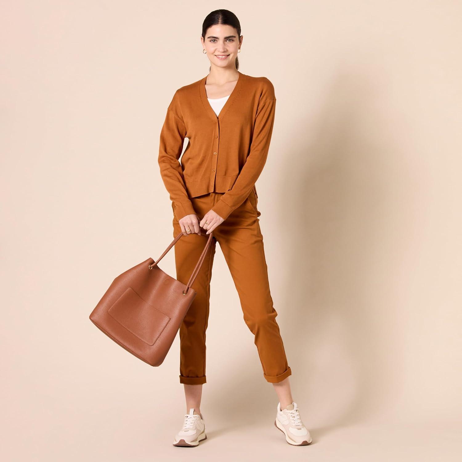 Amazon Essentials Women’s High-Rise Regular-Fit Ankle-Length Tapered-Leg Khaki Pant(Caramel)