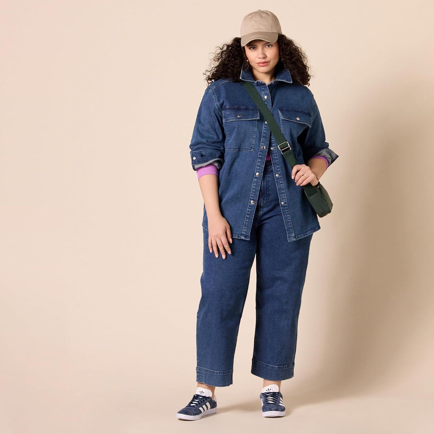 Amazon Essentials Women’s High-Rise Regular-Fit Ankle-Length Wide-Leg Jean(Medium Wash)