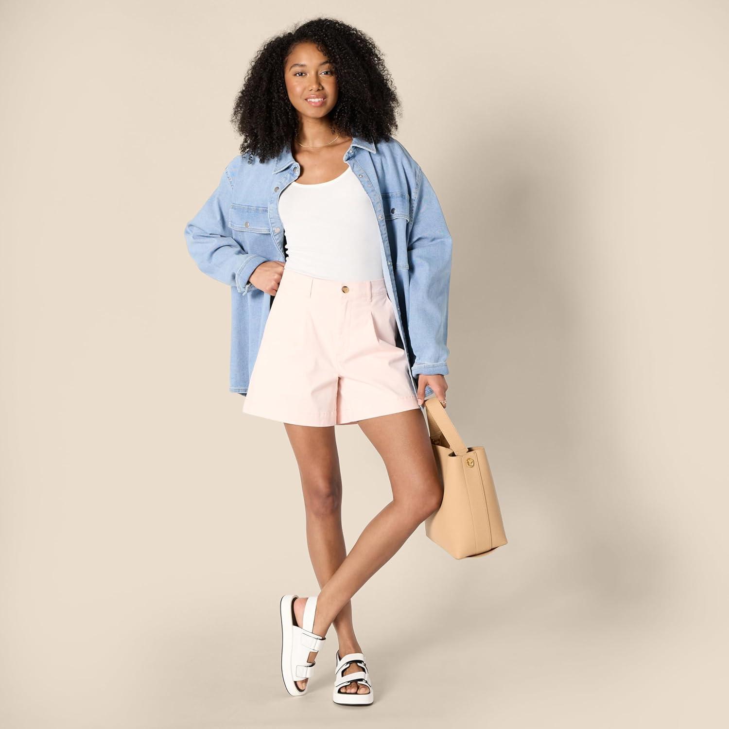 Amazon Essentials Women's High-Rise Relaxed-Fit A-line Elastic Back Short(Rose)