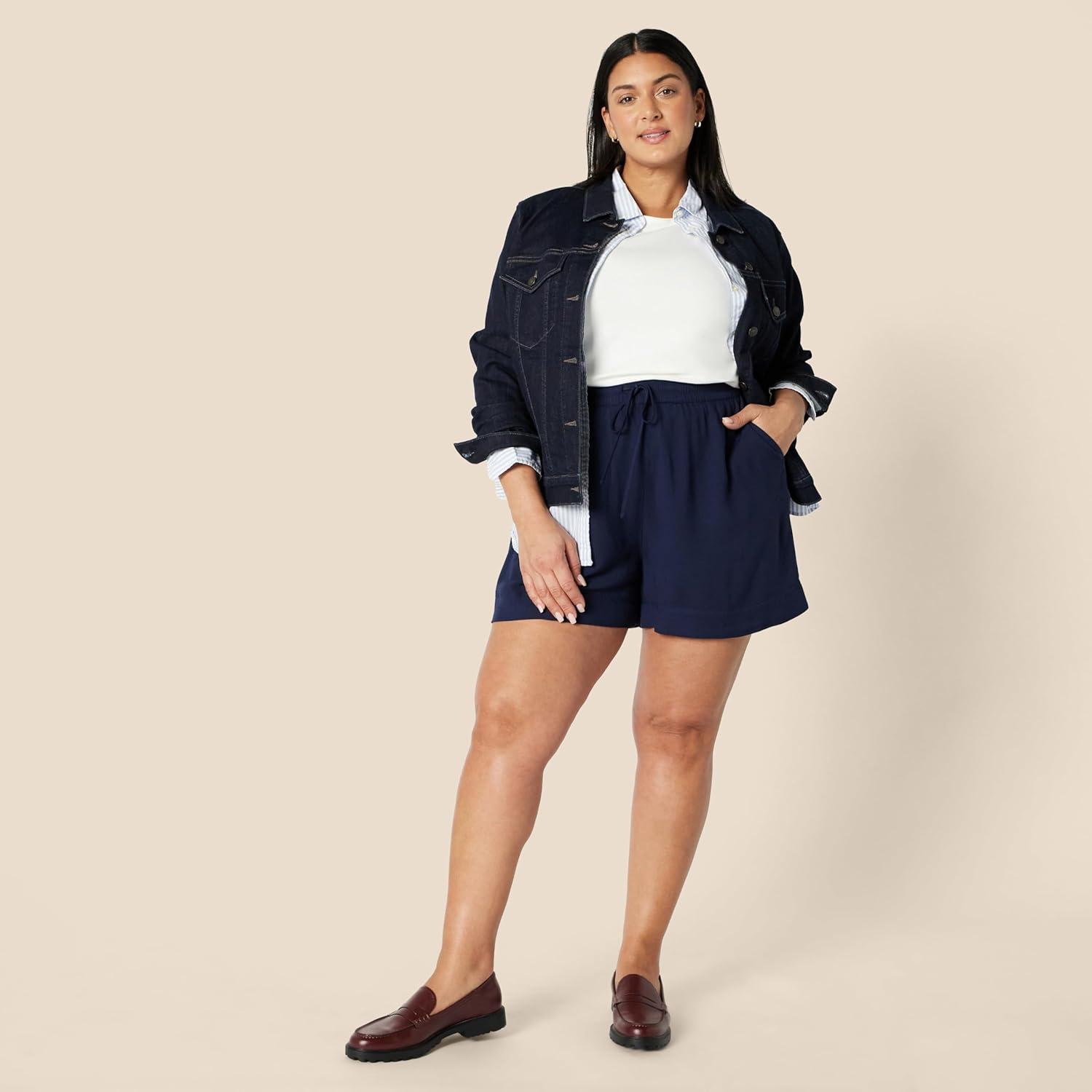 Amazon Essentials Women’s High-Rise Relaxed-Fit Fluid Twill Pull-On Short (Shirt Sold Separately)(Navy)