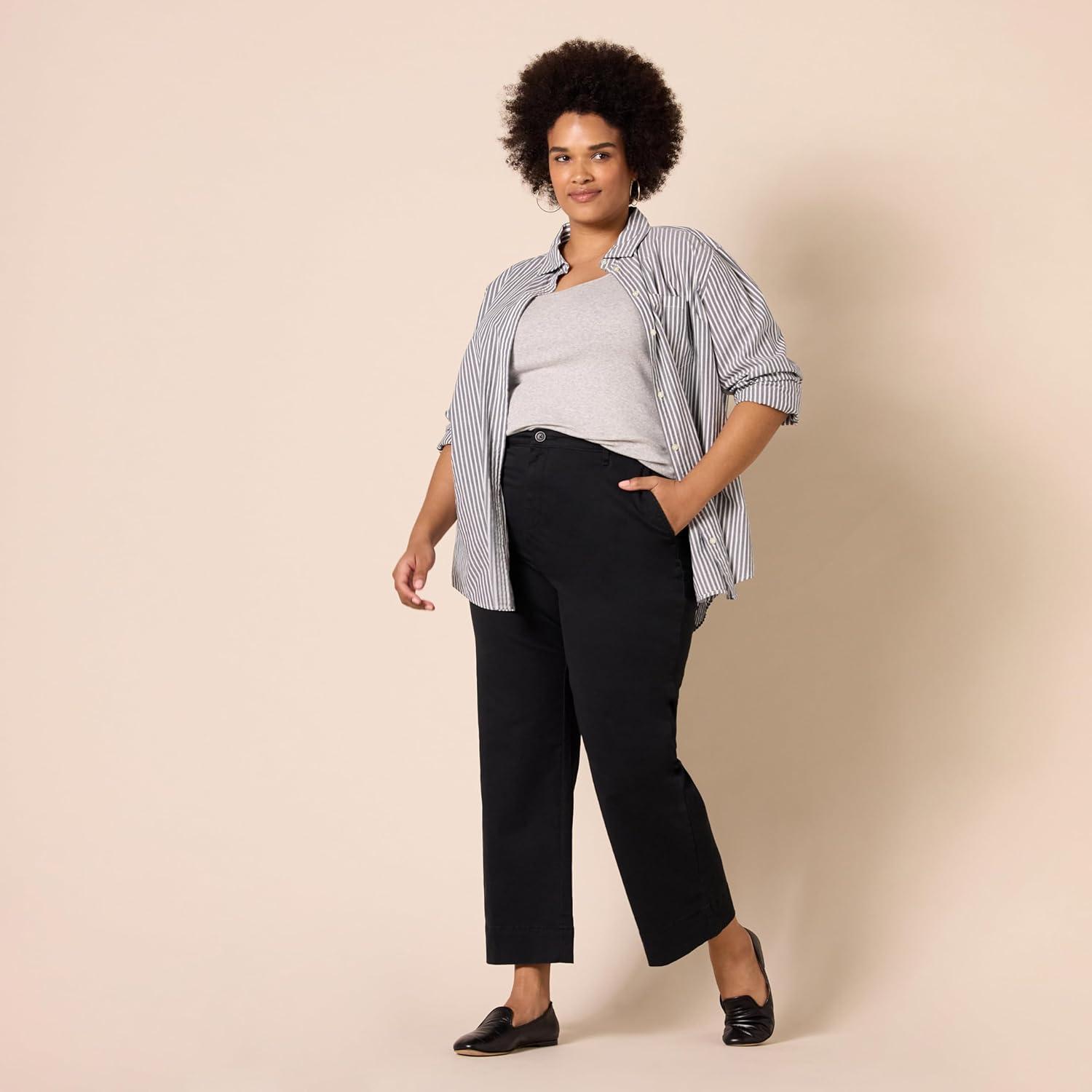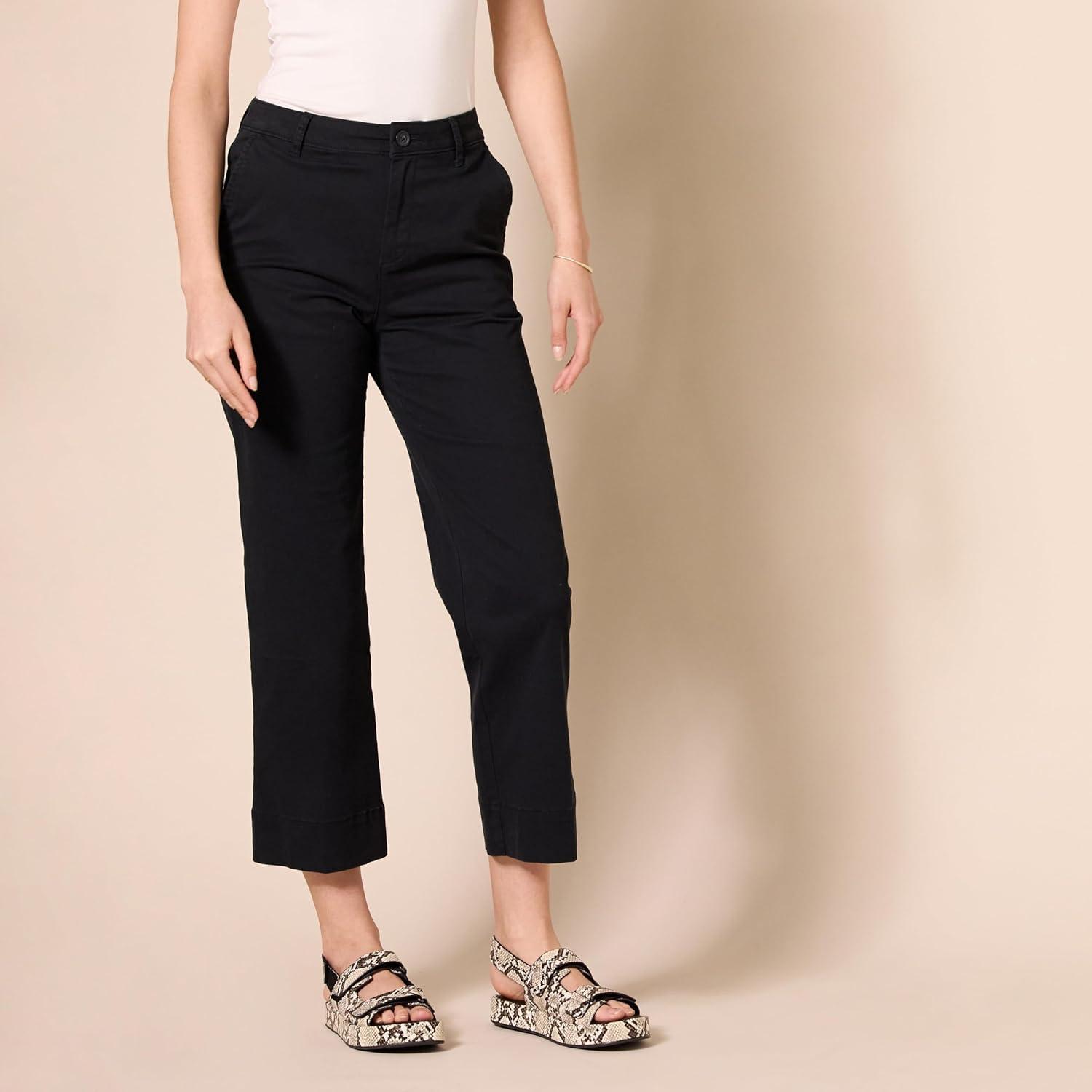Amazon Essentials Womens High-Rise Slim-Fit Ankle-Length Wide-Leg Khaki Pant(Black)
