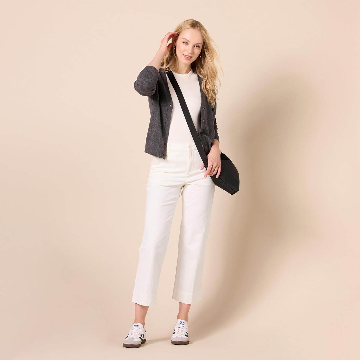 Amazon Essentials Women’s High-Rise Slim-Fit Ankle-Length Wide-Leg Khaki Pant(Eggshell White)