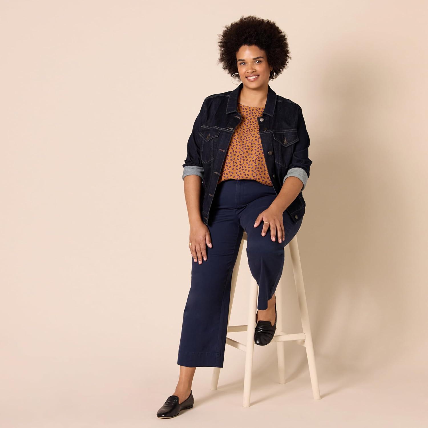 Amazon Essentials Womens High-Rise Slim-Fit Ankle-Length Wide-Leg Khaki Pant(Navy)