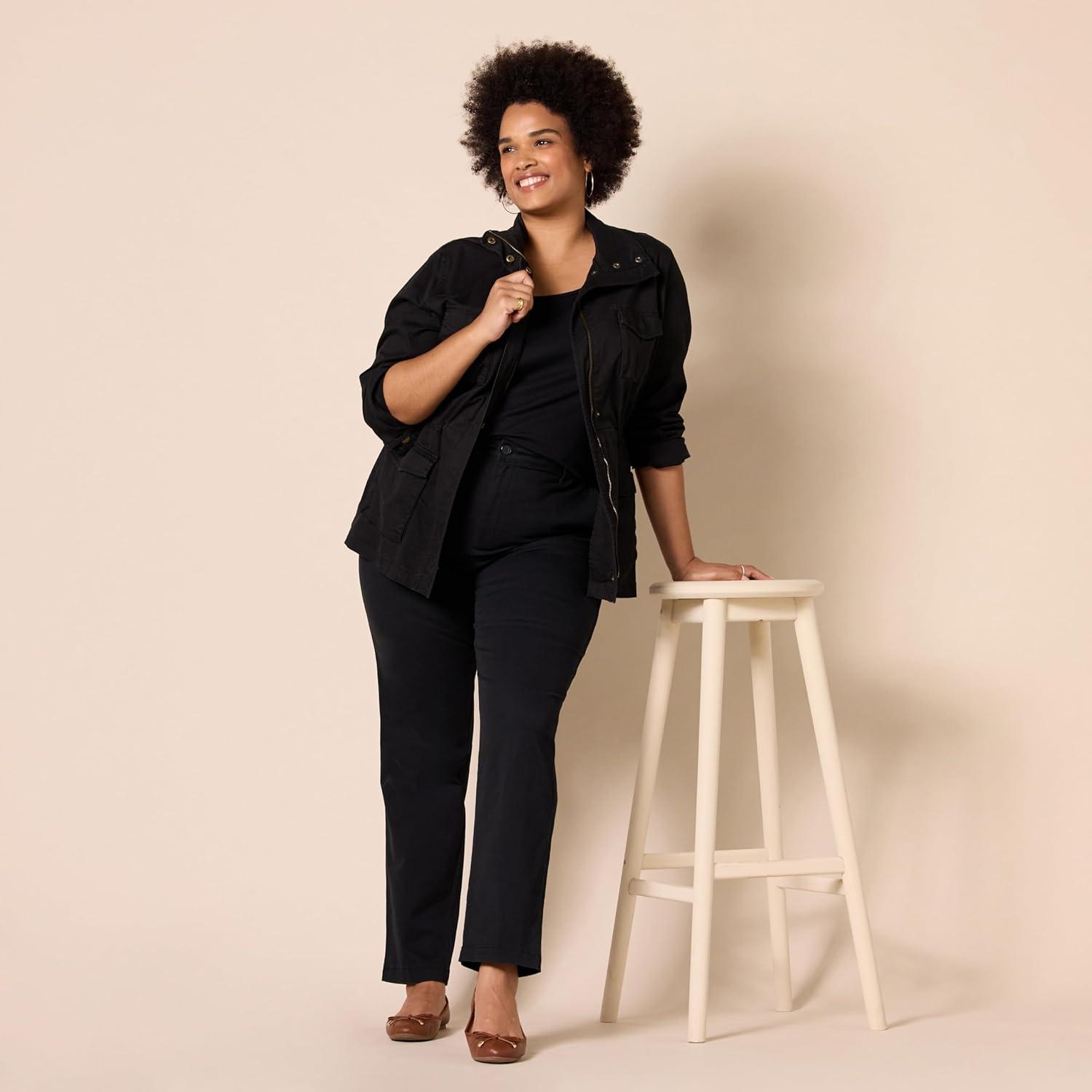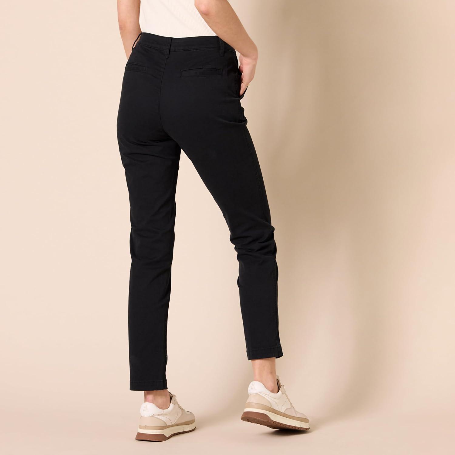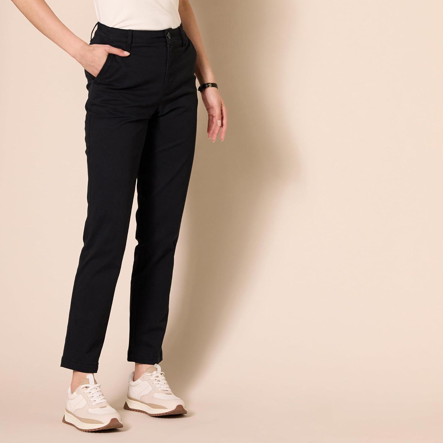 Amazon Essentials Women’s High-Rise Slim-Fit Full-Length Straight-Leg Khaki Pant(Black)