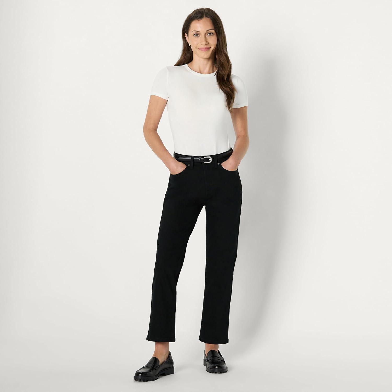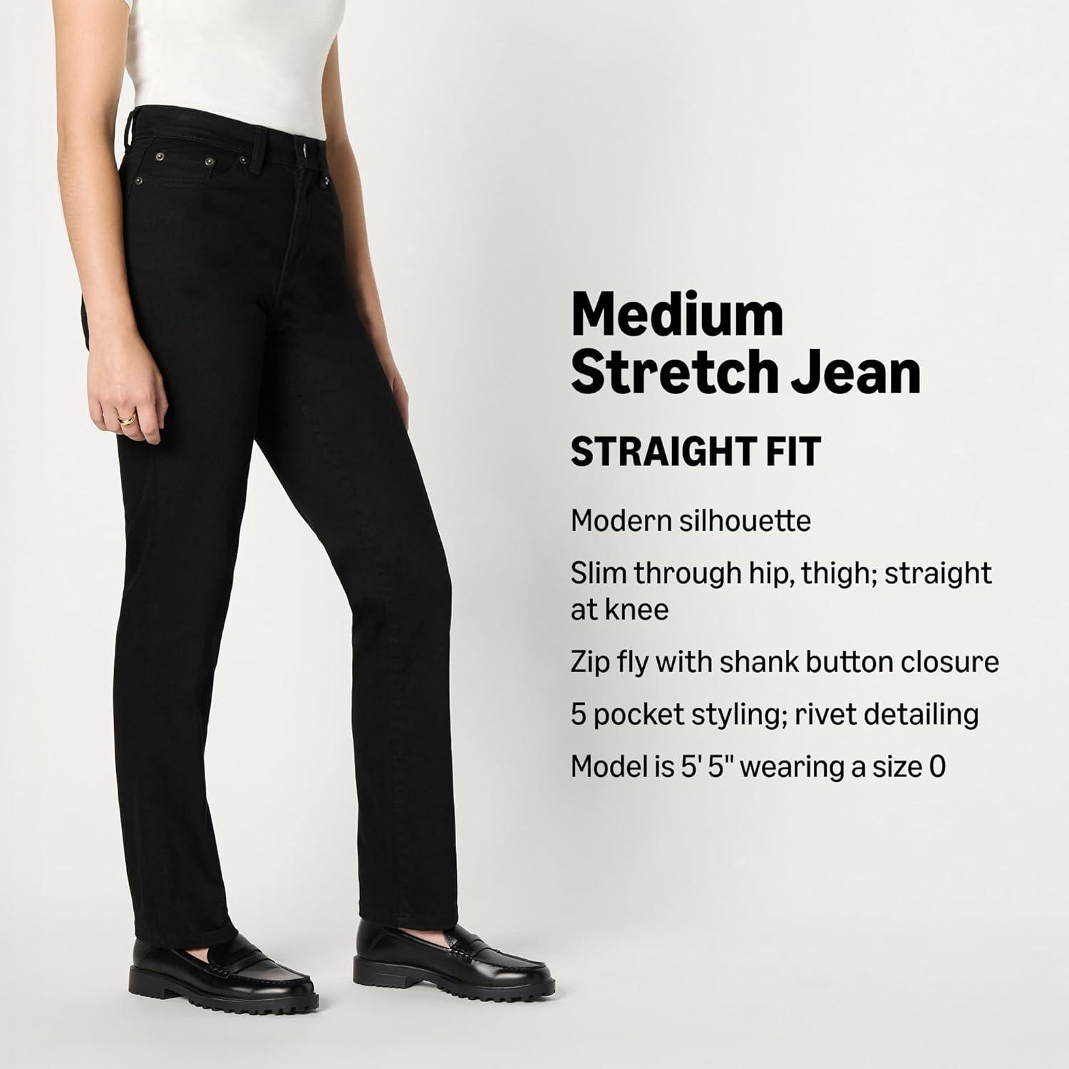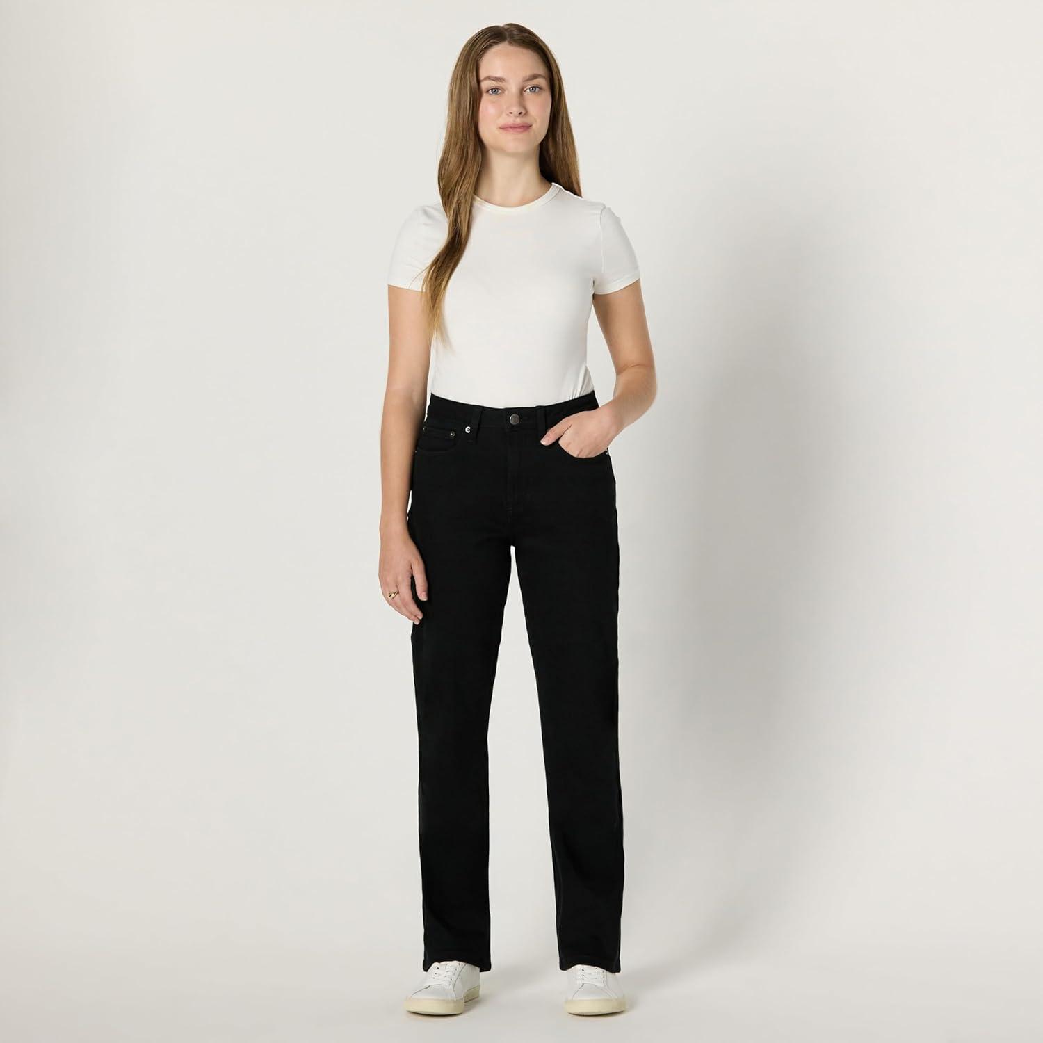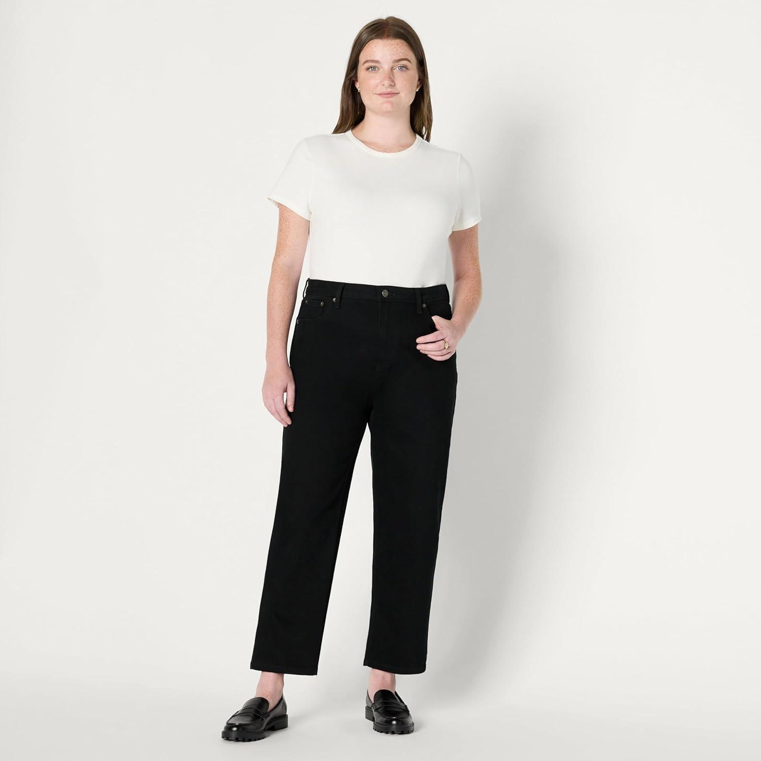 Amazon Essentials Women’s High-Rise Straight Leg Jean(Black)