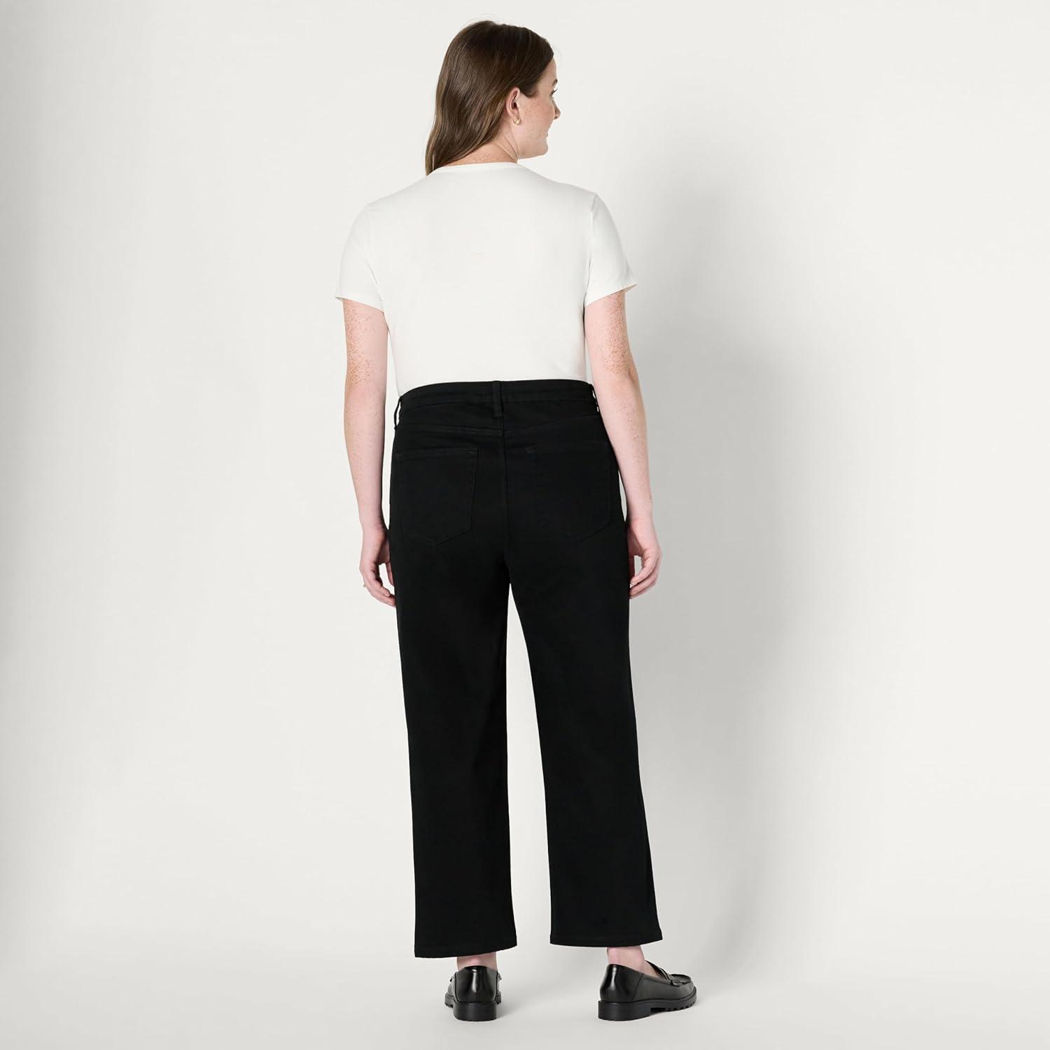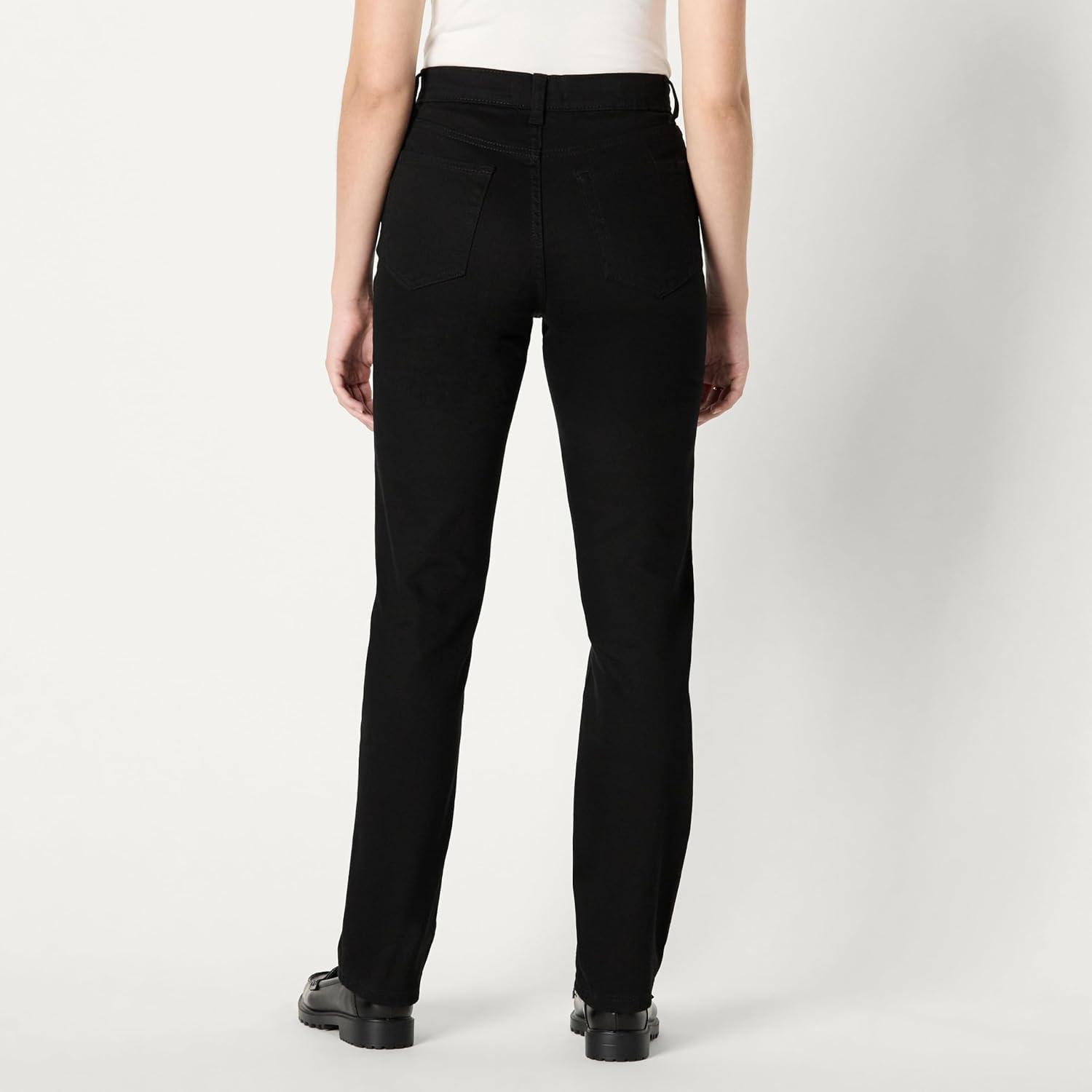 Amazon Essentials Women's High-Rise Straight Leg Jean(Black)