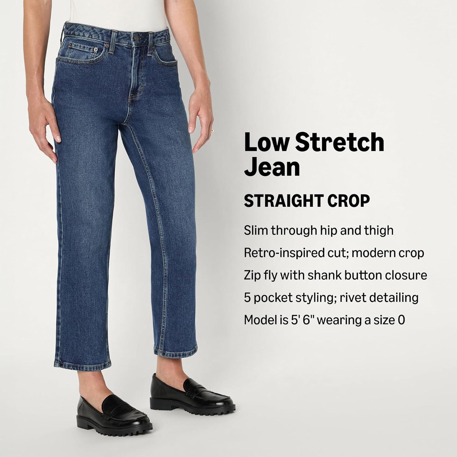 Amazon Essentials Women’s High-Rise Straight Leg Jean(Stone Dark Wash)