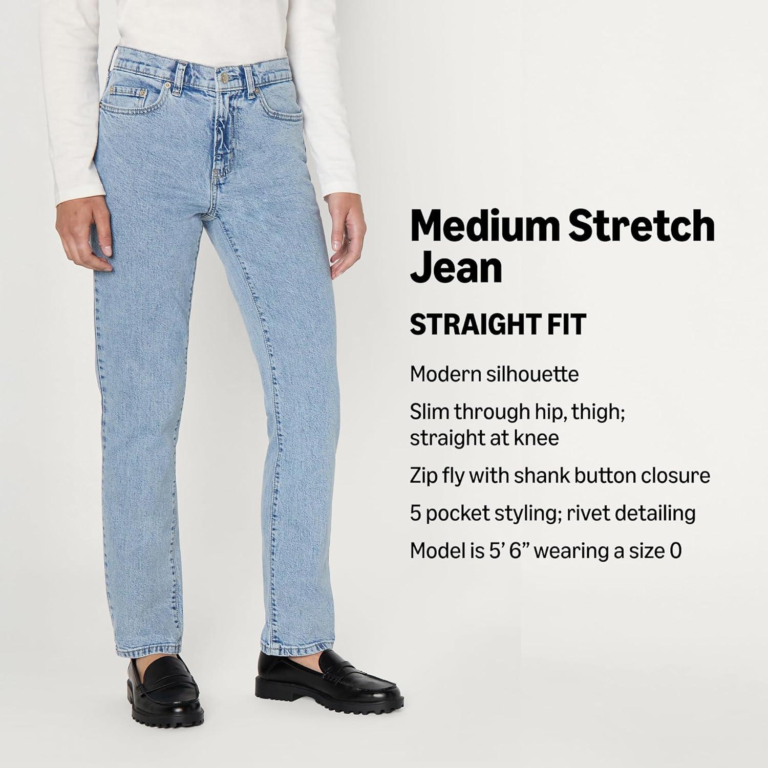 Amazon Essentials Women’s High-Rise Straight Leg Jean(Medium Blue)