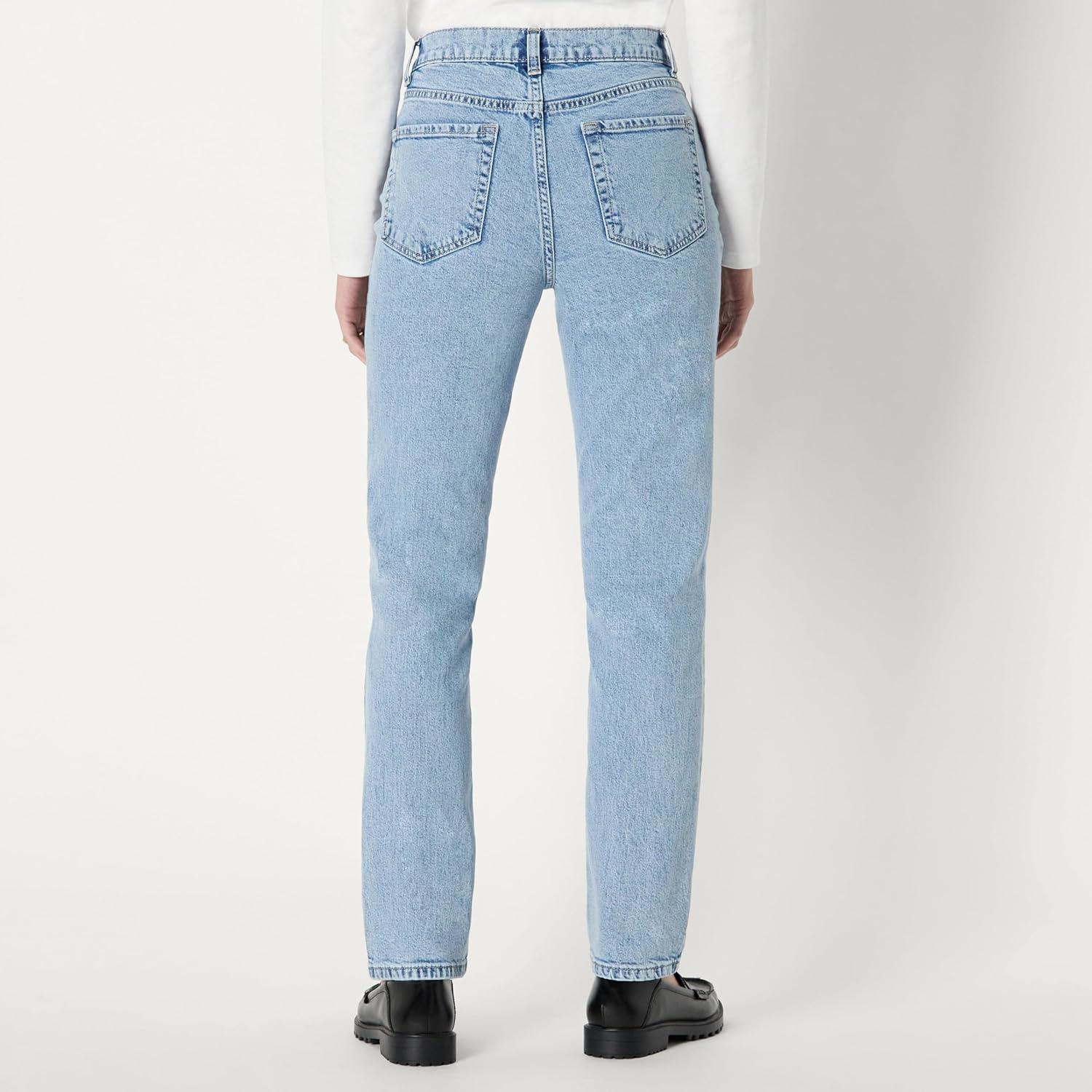 Amazon Essentials Women’s High-Rise Straight Leg Jean(Tinted Ice Light Wash)