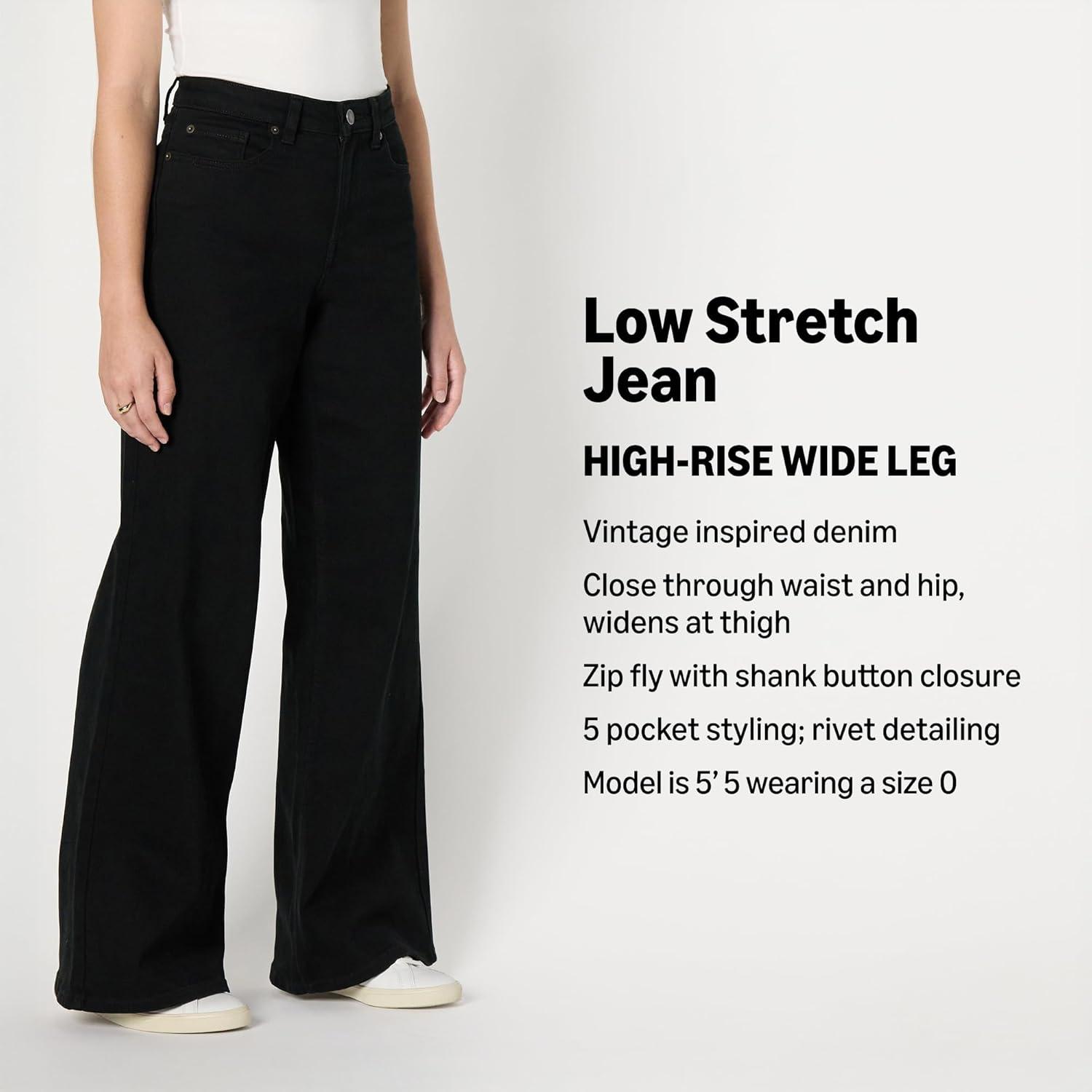 Amazon Essentials Women's High Rise Wide Leg Jean(Black)
