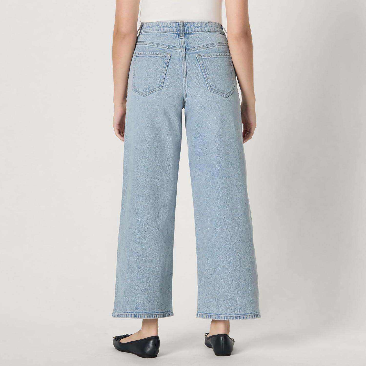 Amazon Essentials Women’s High Rise Wide Leg Jean(Iced Blue Light Wash)