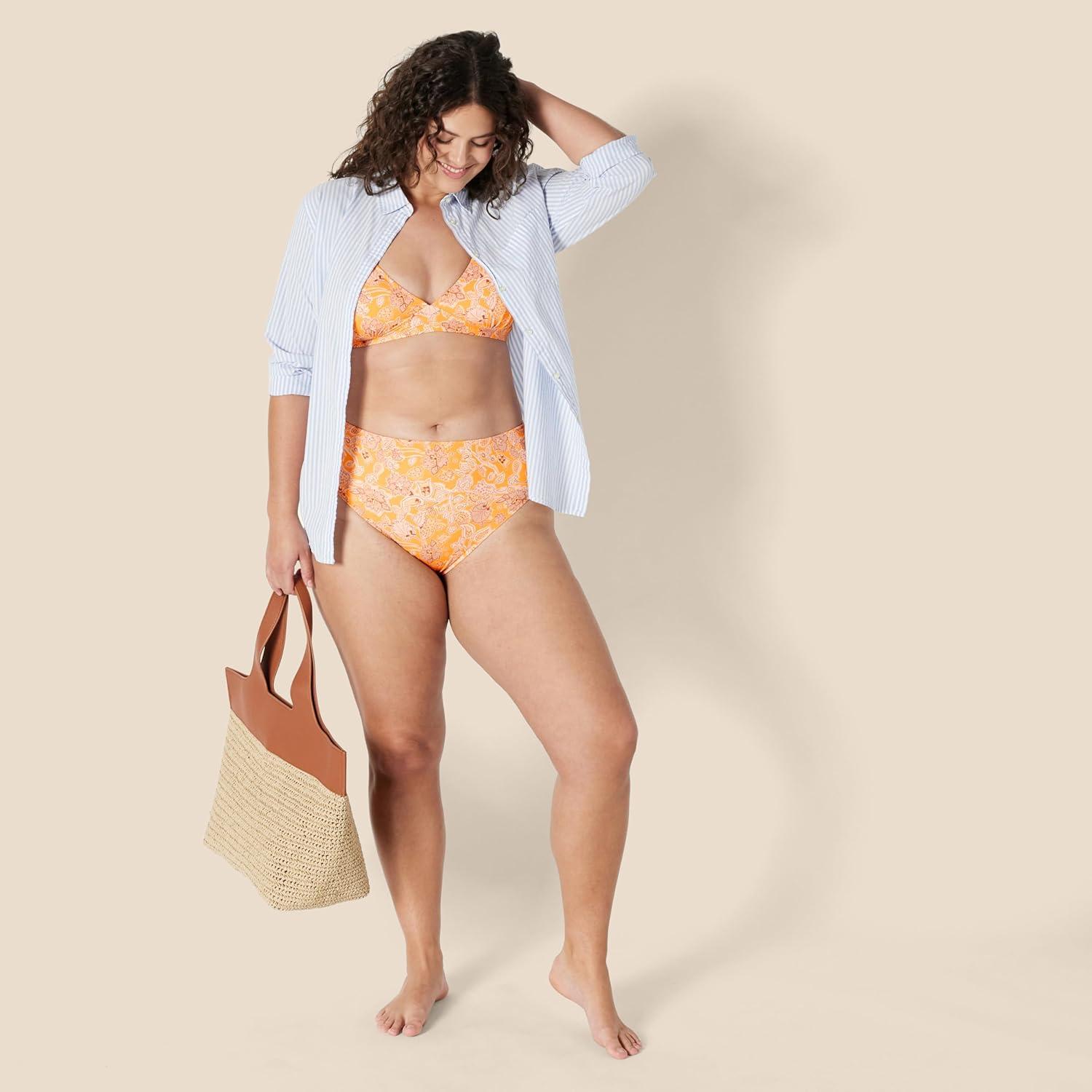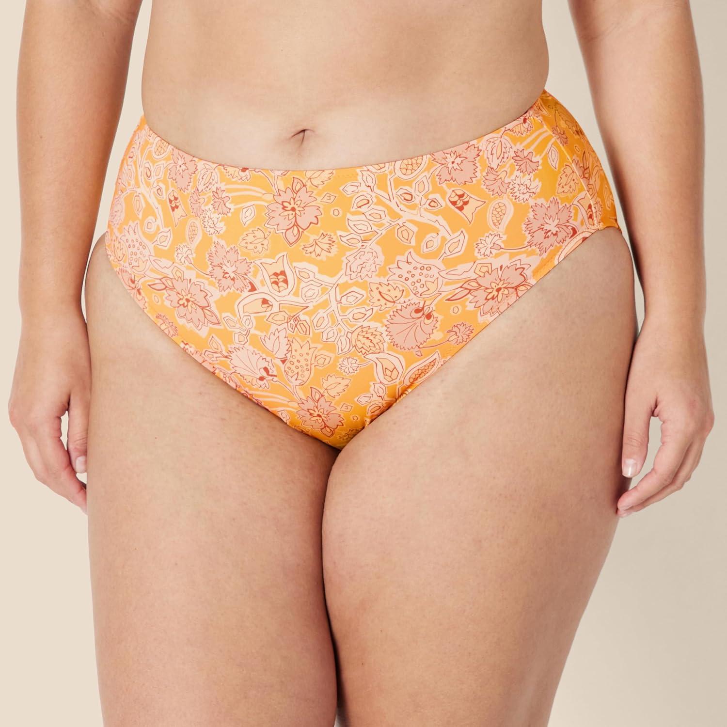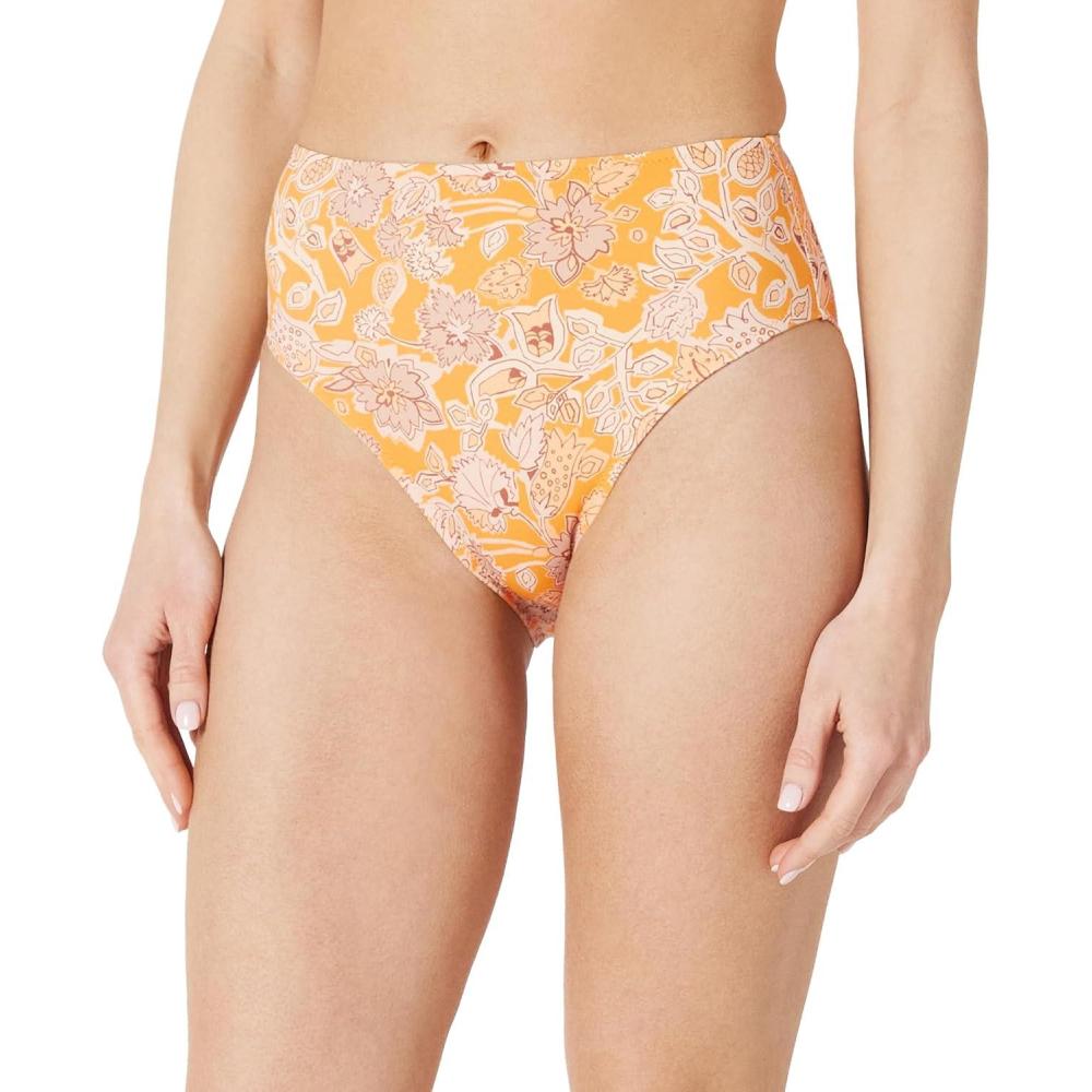 Amazon Essentials Women’s High Waist High Leg Bikini Bottom(Yellow Multi Folk Floral)