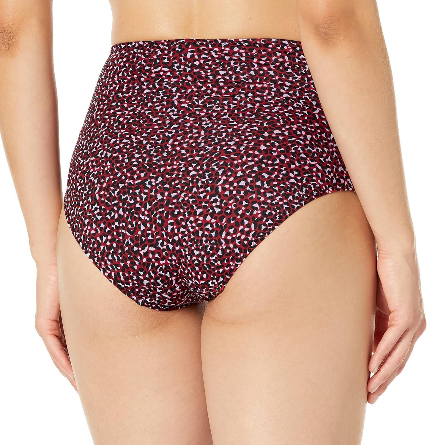 Amazon Essentials Women's High Waist Swim Bottom (Available in Plus Size)(Brick Red Leopard)