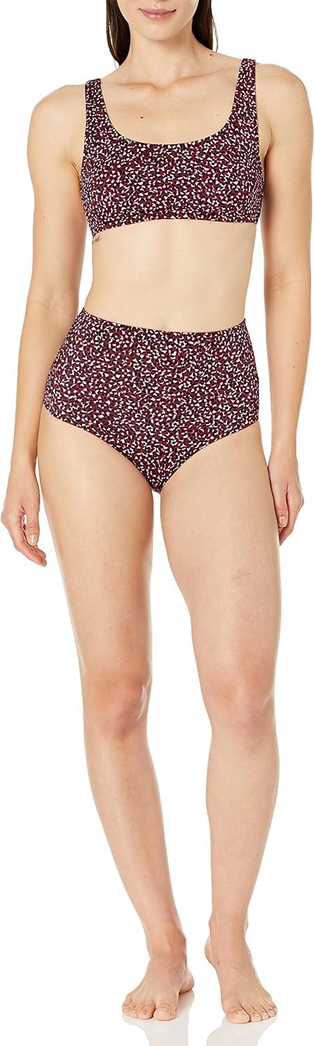 Amazon Essentials Women’s High Waist Swim Bottom (Available in Plus Size)(Brick Red Leopard)