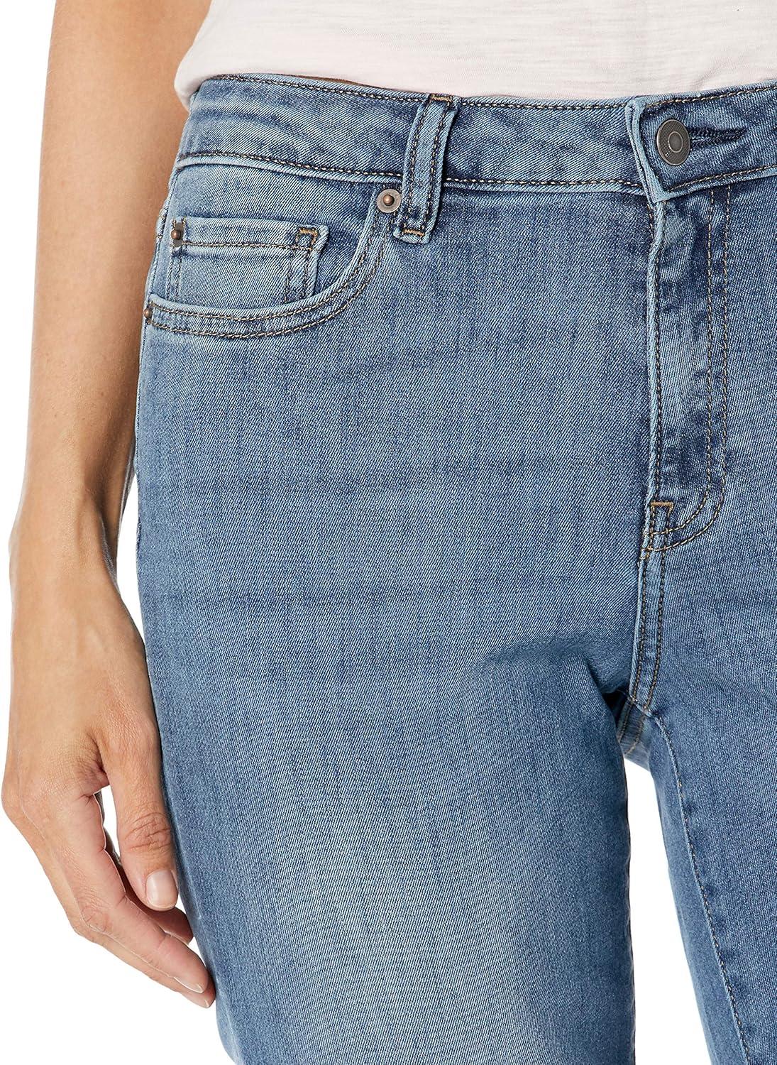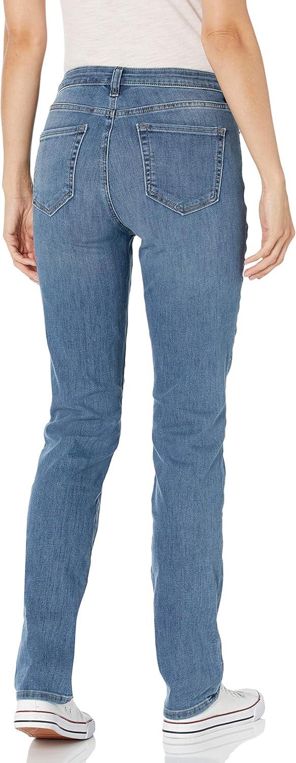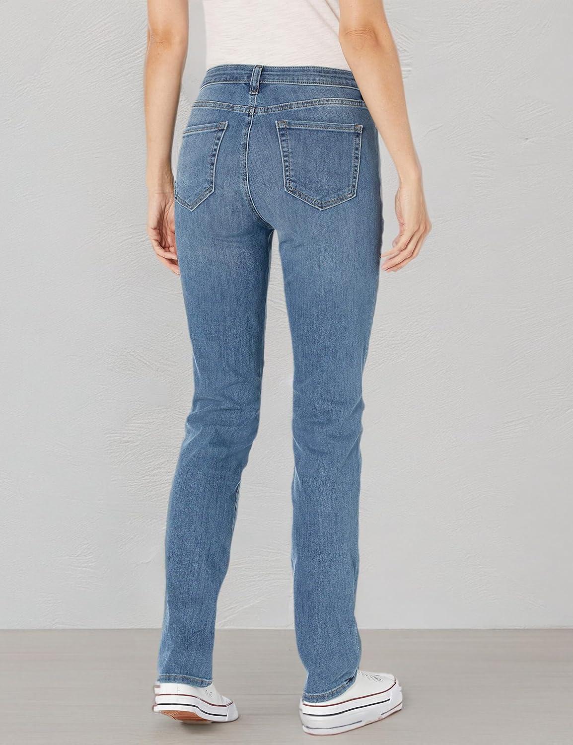 These women's straight leg jeans are ideal for any occasion, from casual outings to more formal gatherings, making them trendy, versatile pants for women. Offered in a classic medium wash, these women's blue jeans will quickly become a staple in your wardrobe, available in various lengths, including women's jeans short length for a personalized fit. These straight jeans for women feature a refined slim fit through the hip and thigh, with a slight ease through the leg, providing both style and comfort. The high stretch denim adds flexibility, making these jeans great for all-day wear. Suitable for a range of sizes, there's something for everyone. Elevate your wardrobe with these women's straight leg jeans, ideal as casual pants for women or to achieve trendy women's jeans styles.