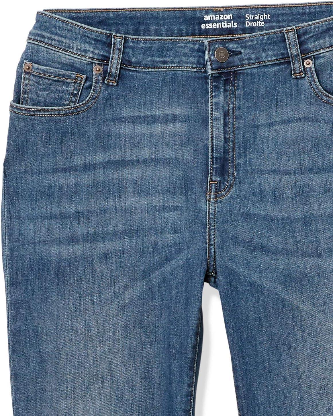 Amazon Essentials Women’s Jeans, Mid Rise Straight Leg Style, Slim Fit(Medium Wash)