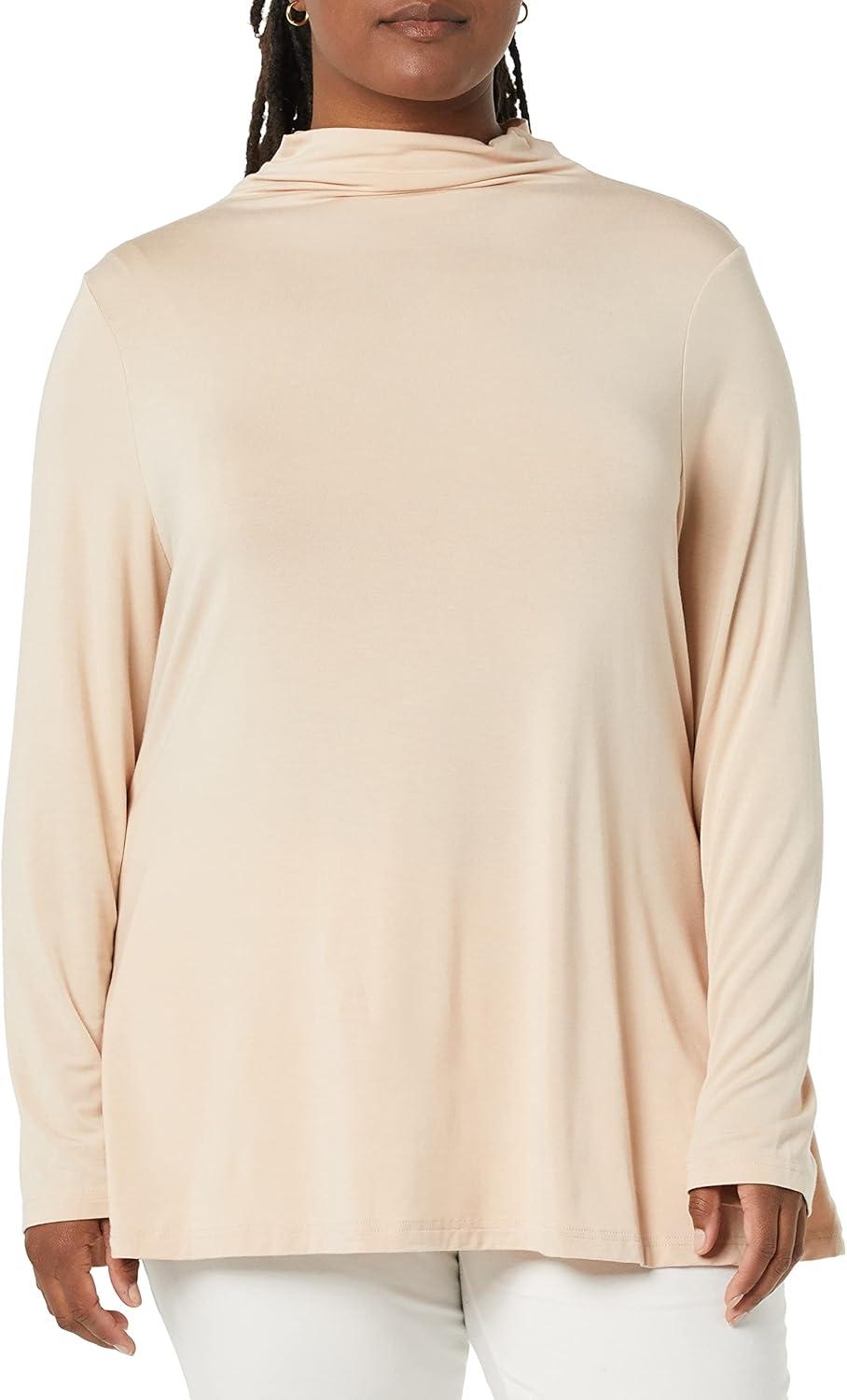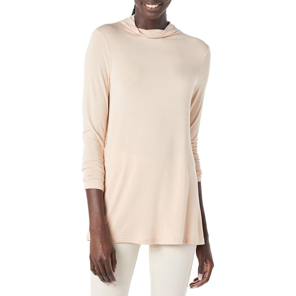 Amazon Essentials Women’s Jersey Long-Sleeve Mock Neck Swing Tunic (Previously Daily Ritual)(Beige)