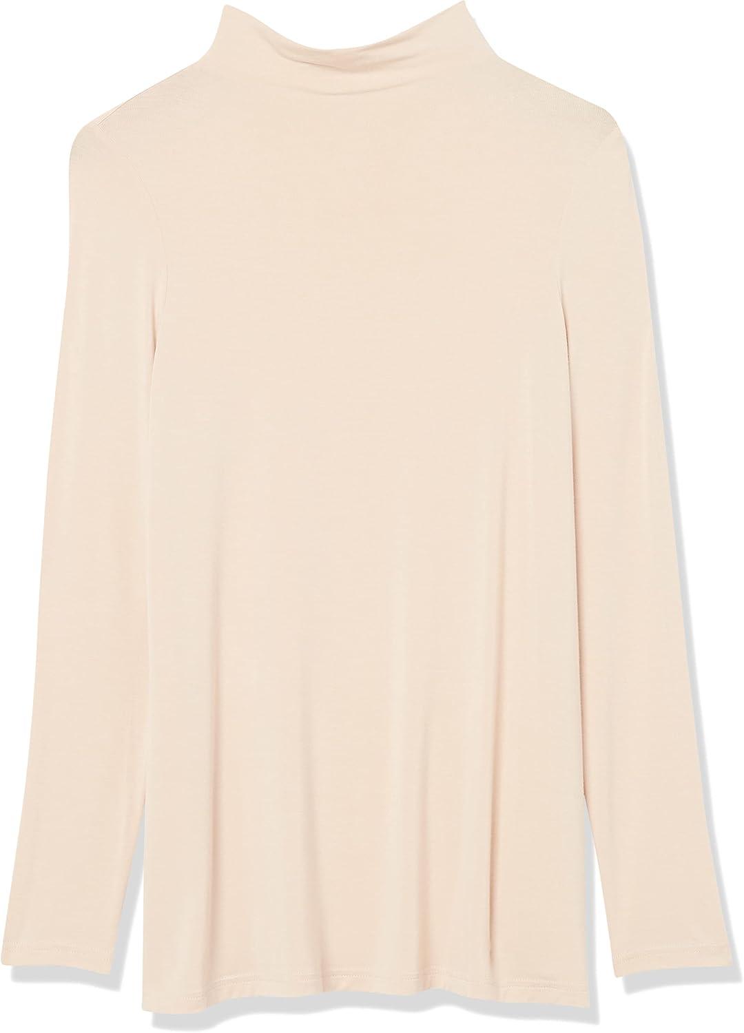 Amazon Essentials Women's Jersey Long-Sleeve Mock Neck Swing Tunic (Previously Daily Ritual)(Beige)
