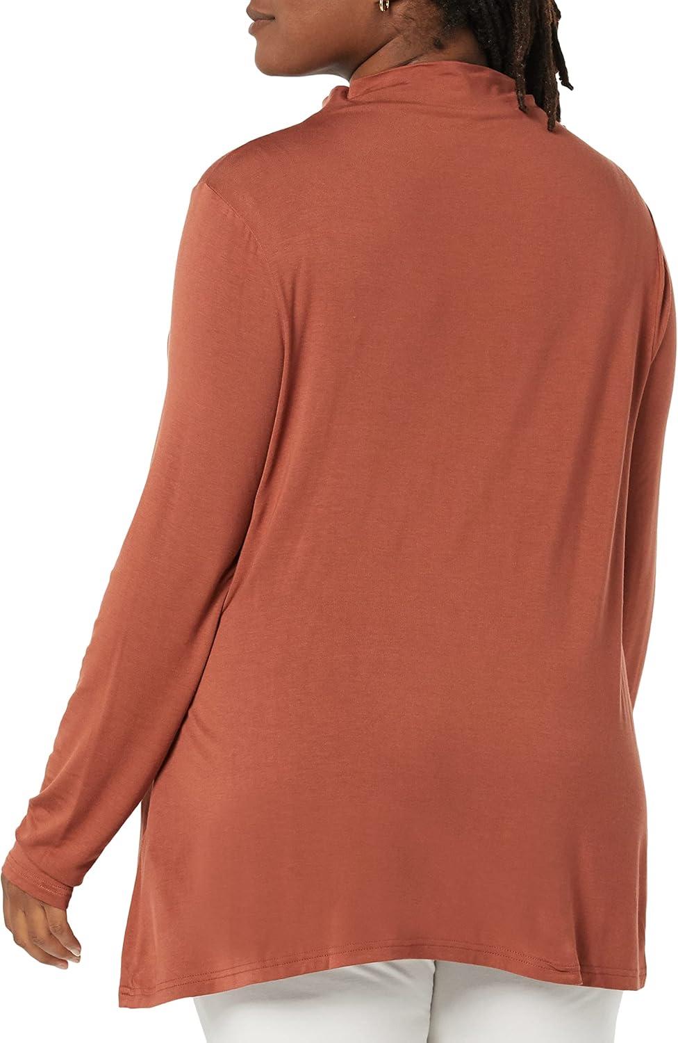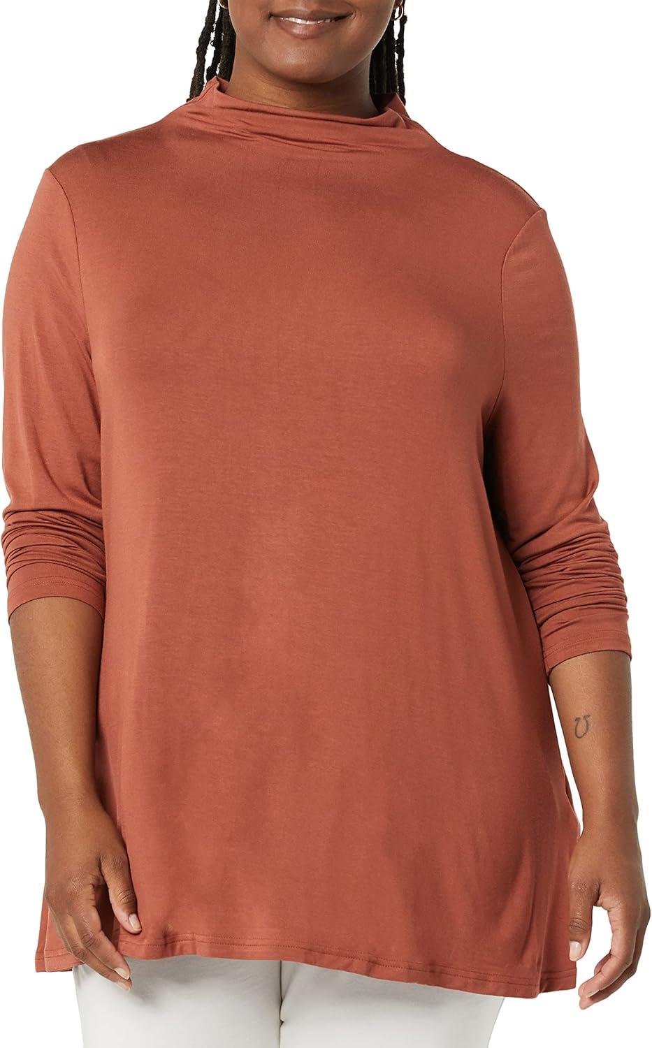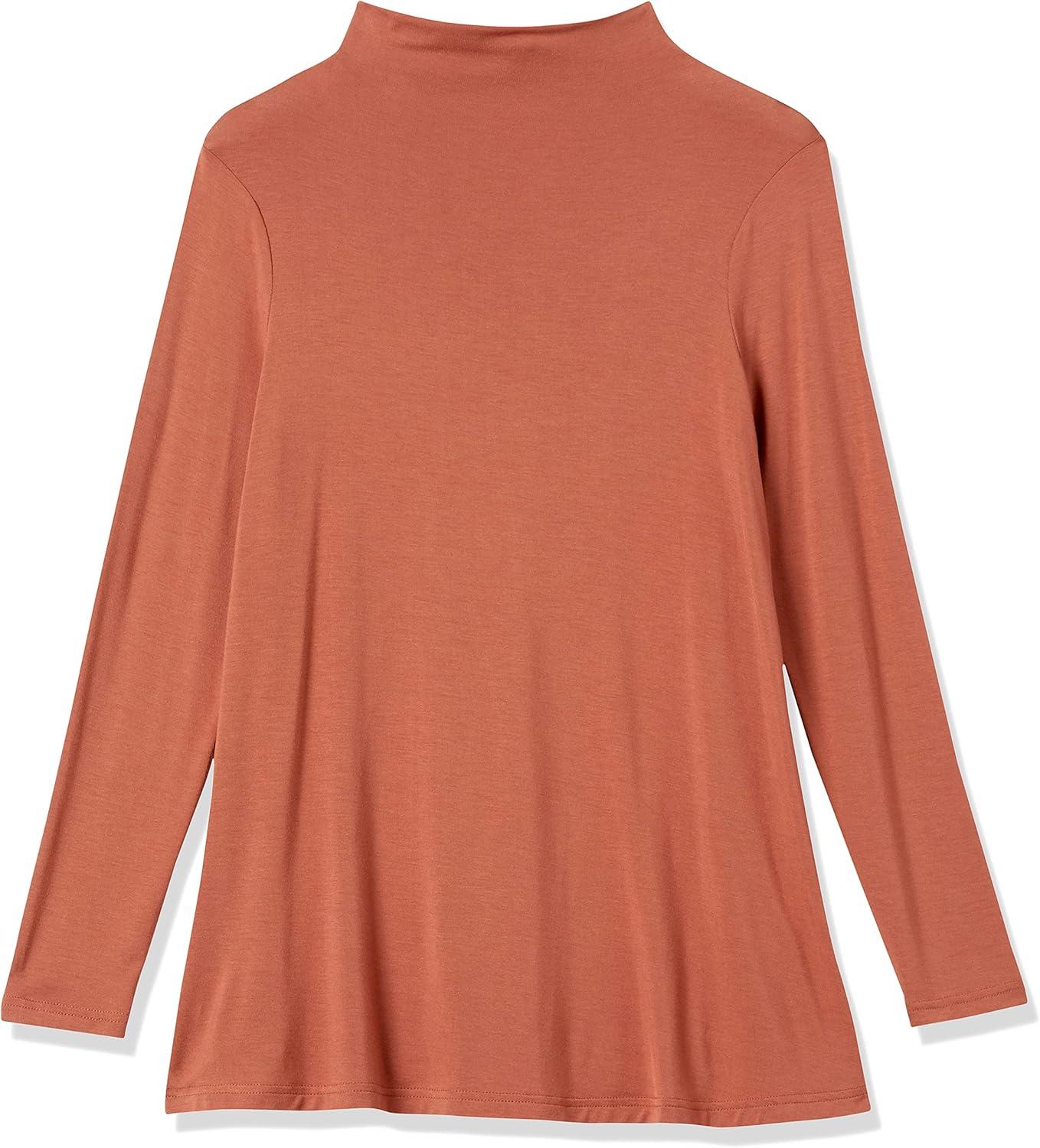 Amazon Essentials Women’s Jersey Long-Sleeve Mock Neck Swing Tunic (Previously Daily Ritual)(Brown)