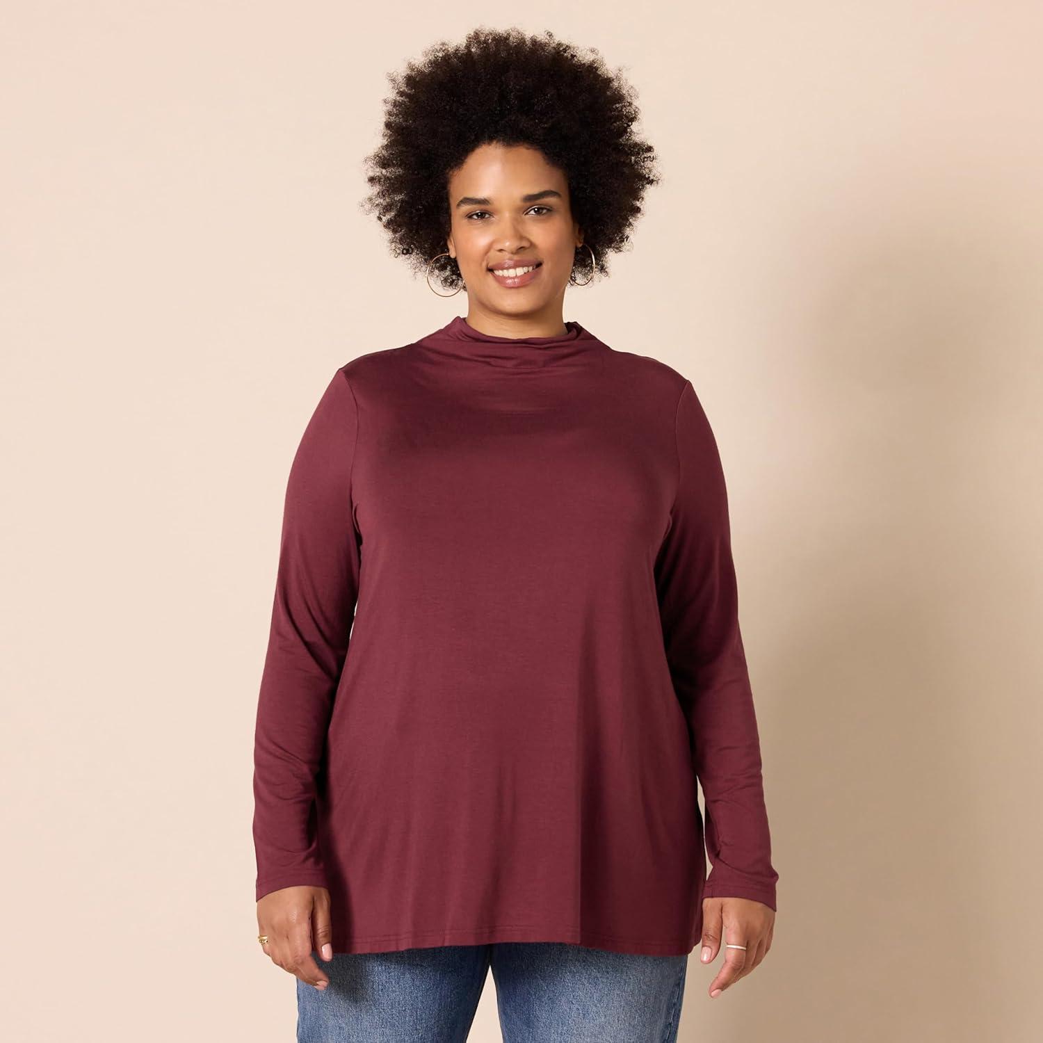 Amazon Essentials Women’s Jersey Long-Sleeve Mock Neck Swing Tunic (Previously Daily Ritual)(Dark Burgundy)