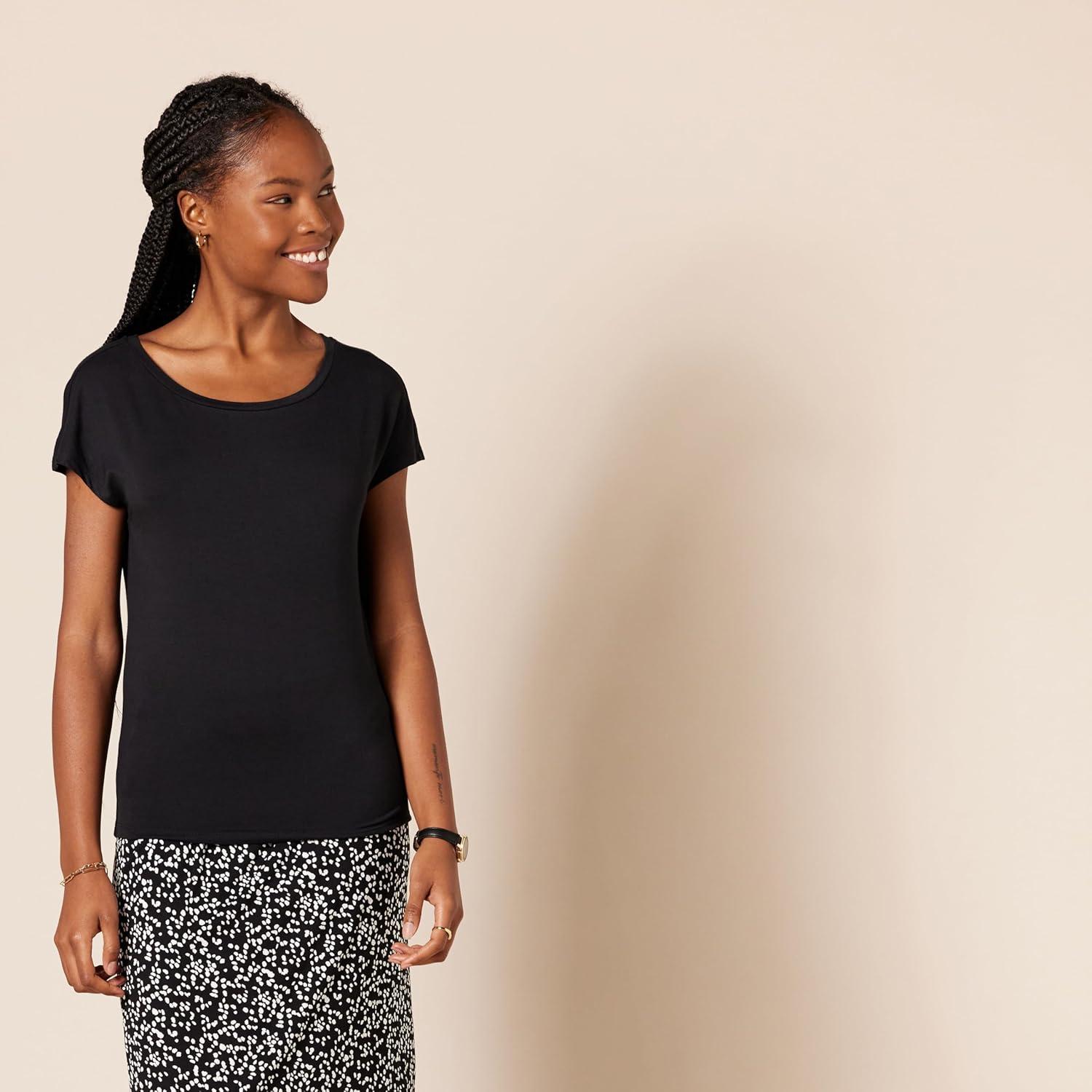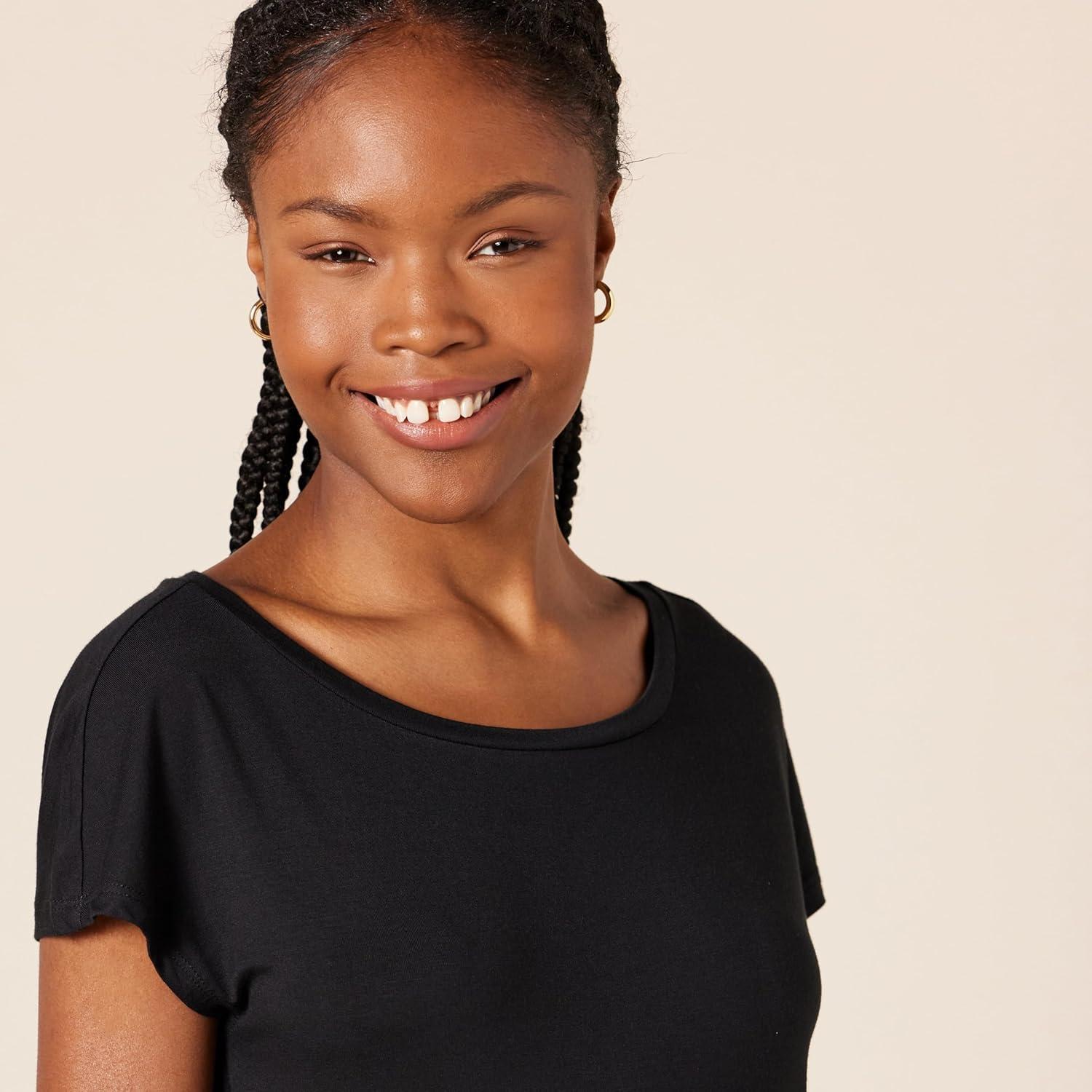 Amazon Essentials Women’s Jersey Regular-Fit Short-Sleeve Boat-Neck T-Shirt, Pack of 2(Black/White)