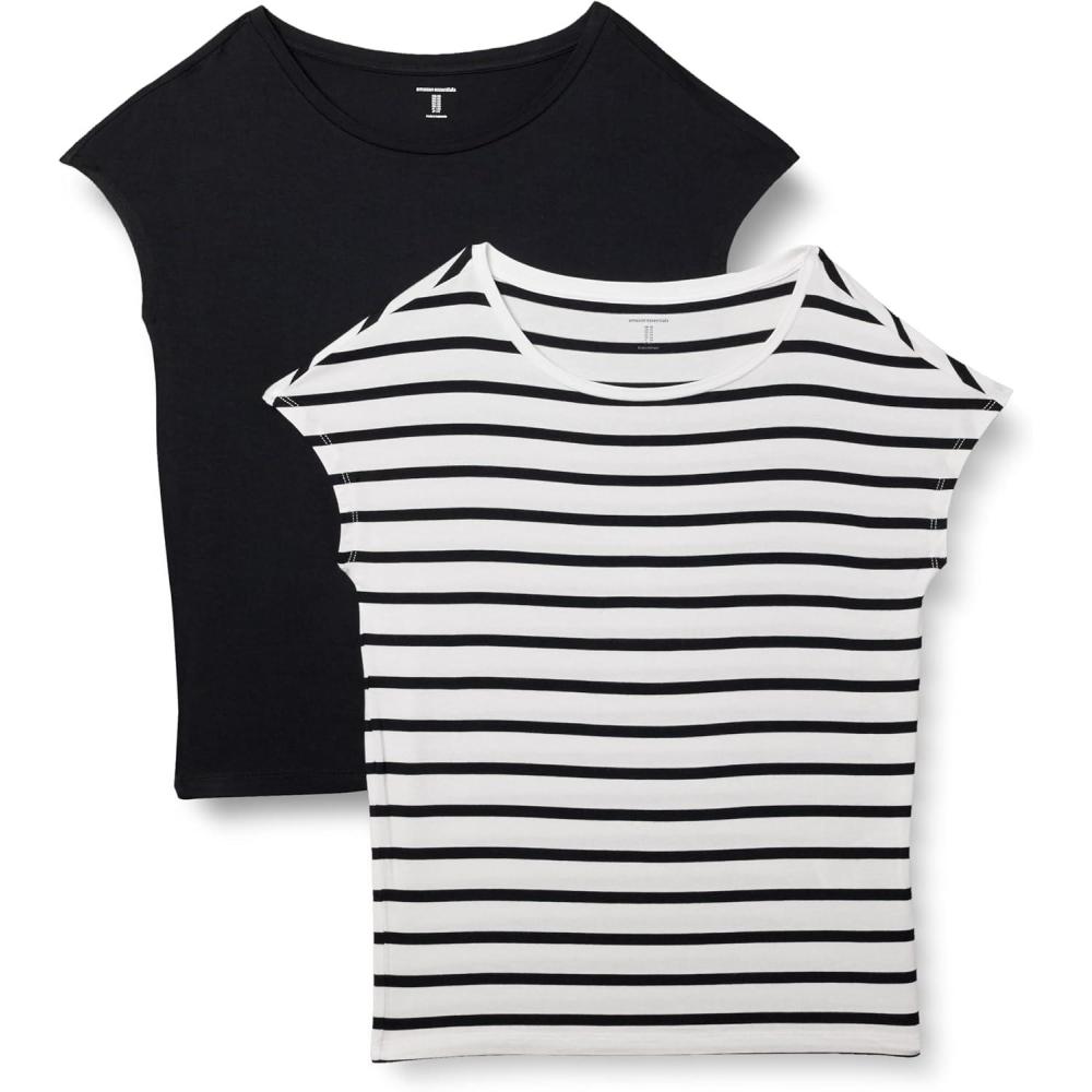 Amazon Essentials Women’s Jersey Regular-Fit Short-Sleeve Boat-Neck T-Shirt, Pack of 2(Black/White French Stripe)