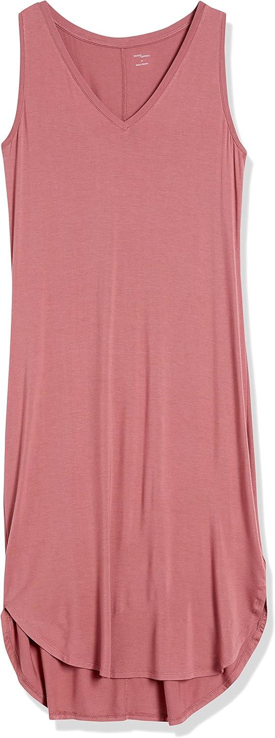 Amazon Essentials Women’s Jersey Regular-Fit Sleeveless v-Neck Midi Dress (Previously Daily Ritual)(Dark Rose)