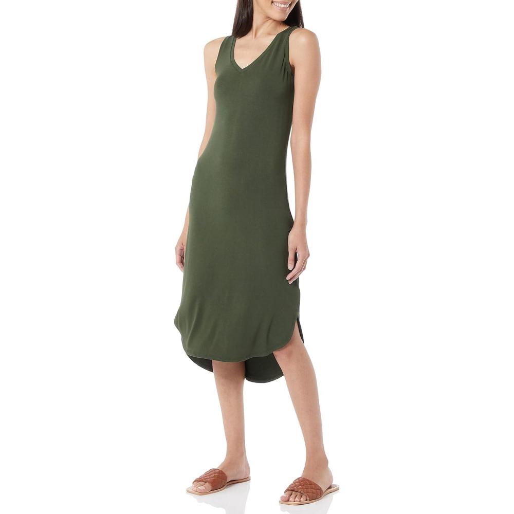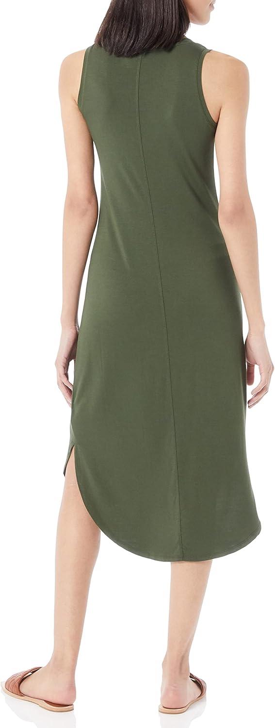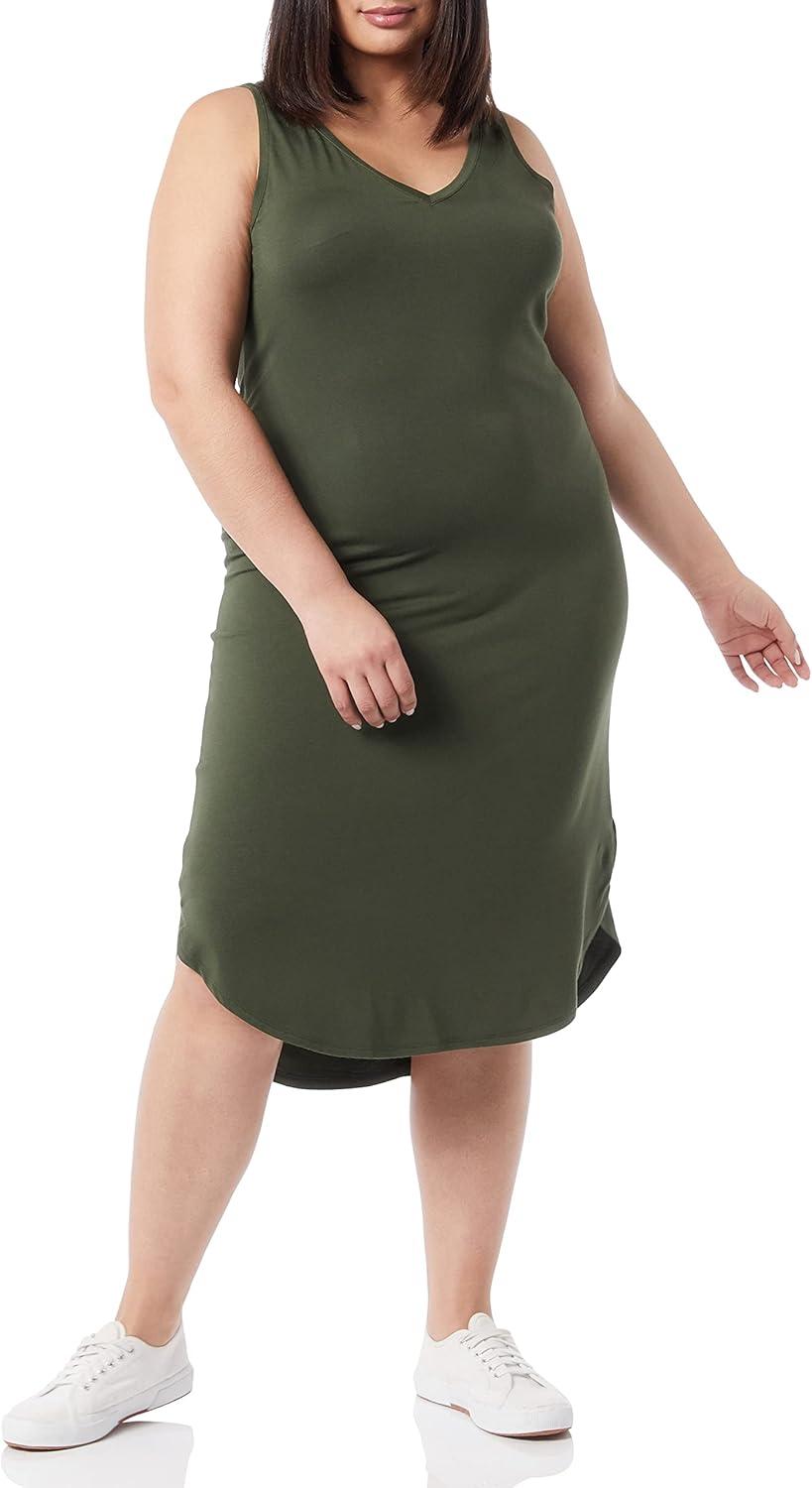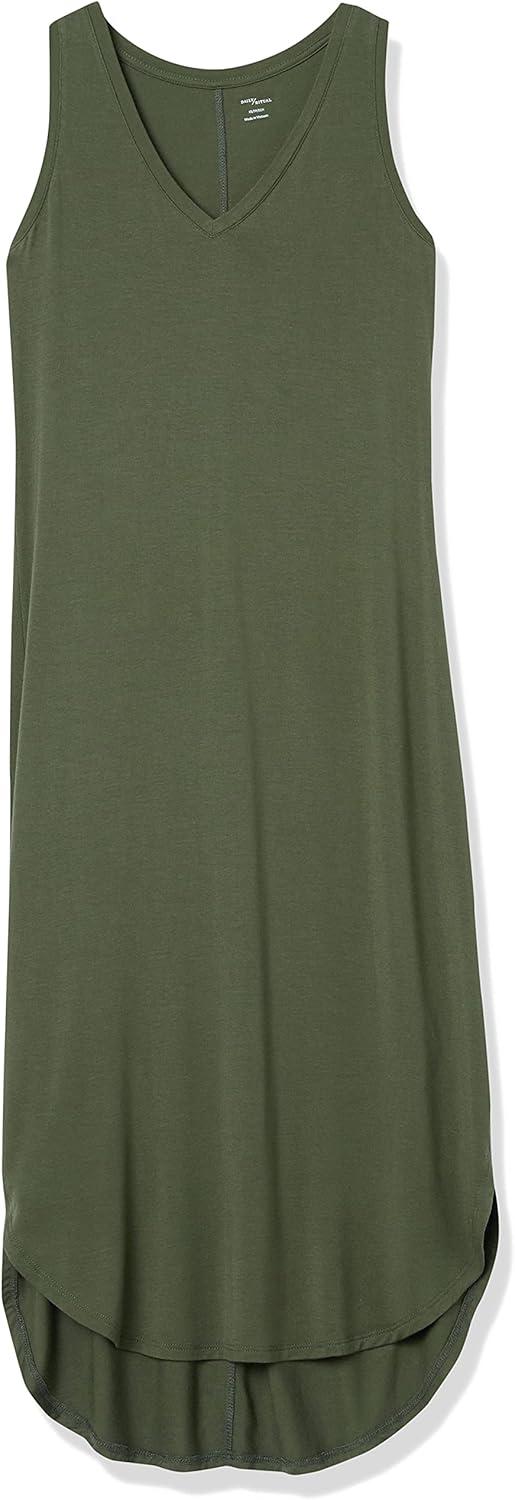 Amazon Essentials Women’s Jersey Regular-Fit Sleeveless v-Neck Midi Dress (Previously Daily Ritual)(Forest Green)