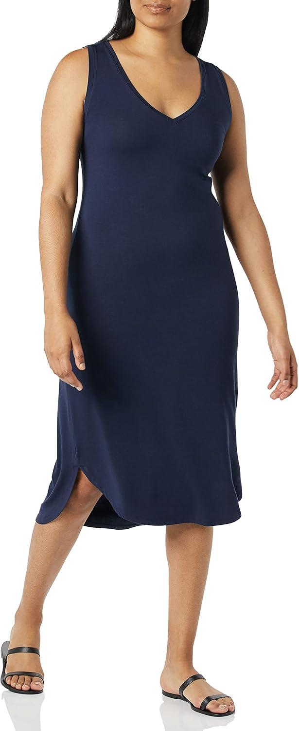 Amazon Essentials Women’s Jersey Regular-Fit Sleeveless v-Neck Midi Dress (Previously Daily Ritual)(Navy)