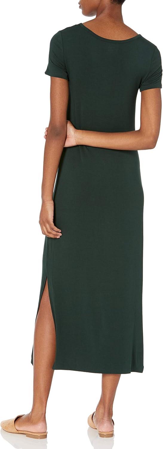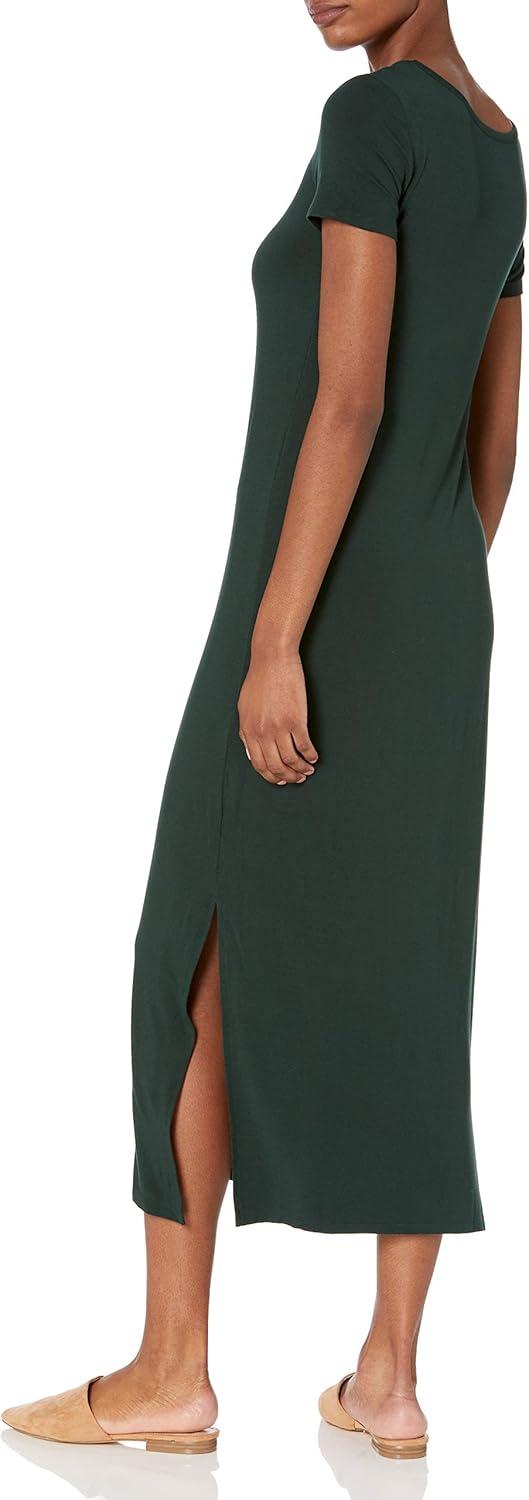 Amazon Essentials Women's Jersey Standard-Fit Short-Sleeve Crewneck Side Slit Maxi Dress (Previously Daily Ritual)(Deep Green)