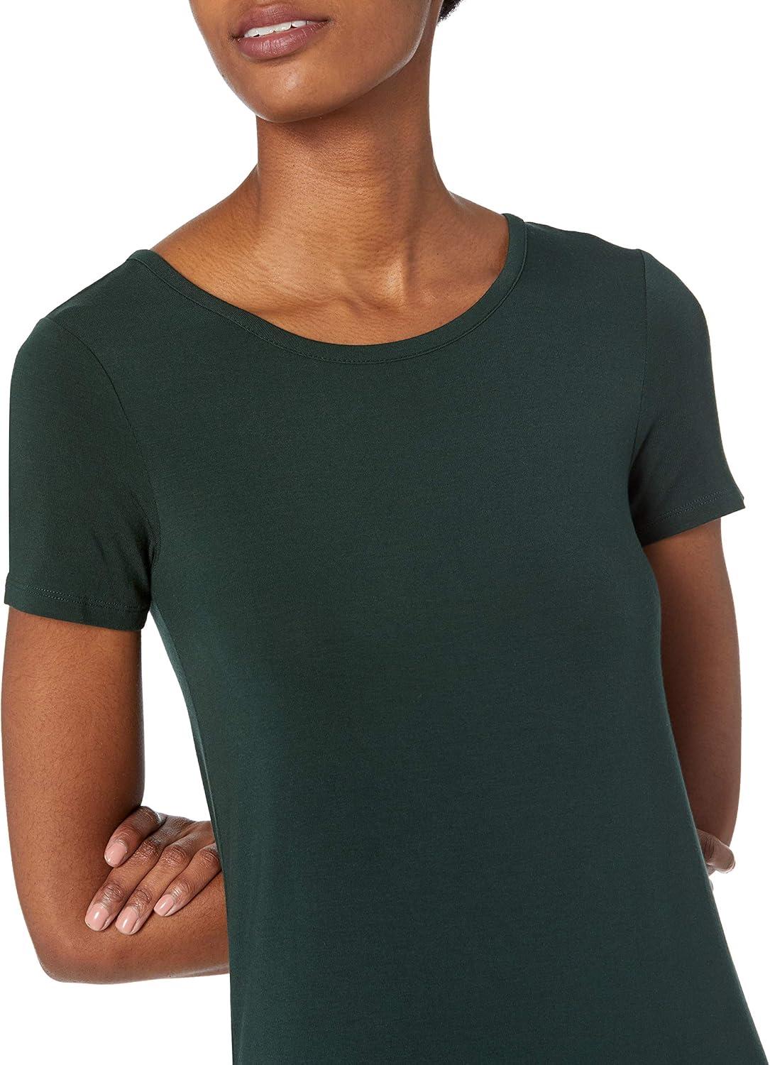 Amazon Essentials Women’s Jersey Standard-Fit Short-Sleeve Crewneck Side Slit Maxi Dress (Previously Daily Ritual)(Dark Emerald Green)