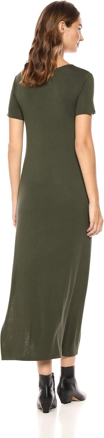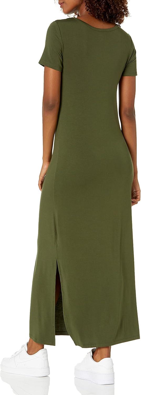 Amazon Essentials Women's Jersey Standard-Fit Short-Sleeve Crewneck Side Slit Maxi Dress (Previously Daily Ritual)(Forest Green)
