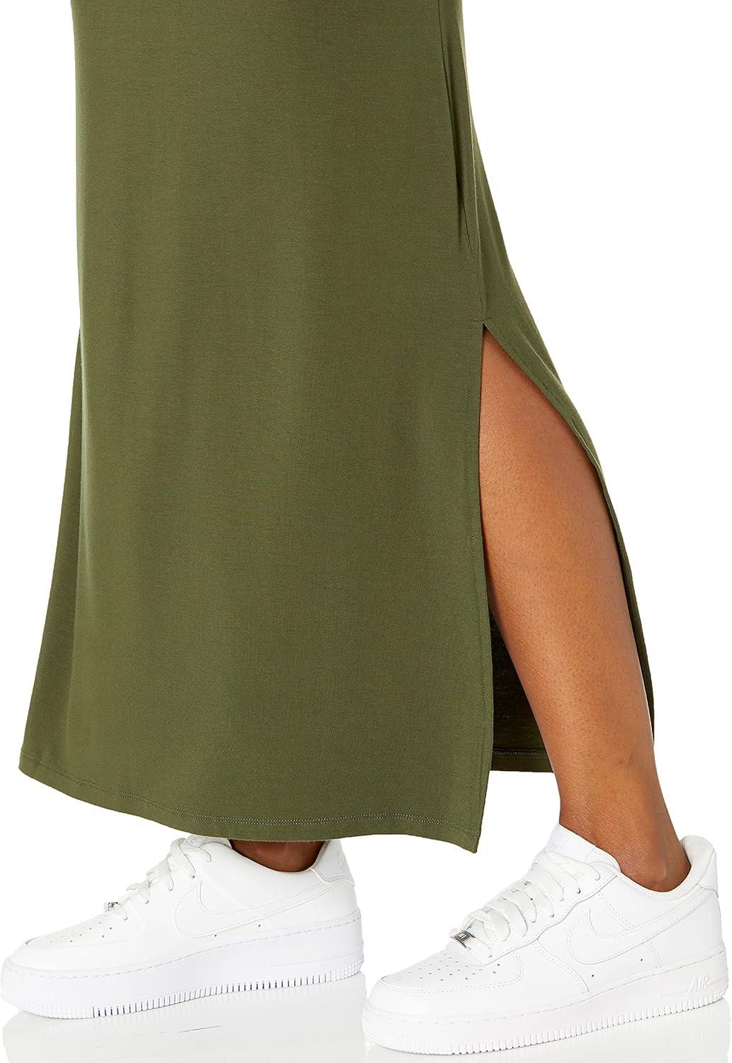Amazon Essentials Women’s Jersey Standard-Fit Short-Sleeve Crewneck Side Slit Maxi Dress (Previously Daily Ritual)(Forest Green)