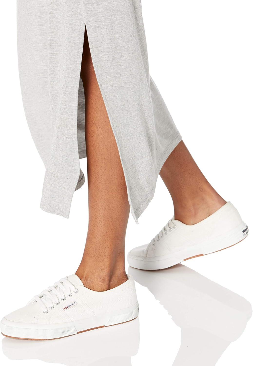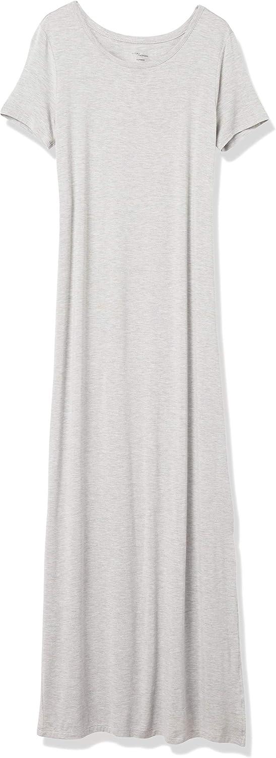 Amazon Essentials Women’s Jersey Standard-Fit Short-Sleeve Crewneck Side Slit Maxi Dress (Previously Daily Ritual)(Grey Heather)