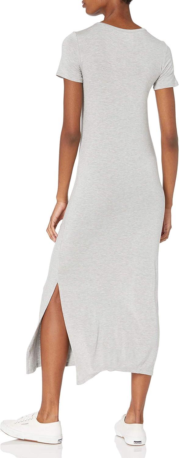 Amazon Essentials Women's Jersey Standard-Fit Short-Sleeve Crewneck Side Slit Maxi Dress (Previously Daily Ritual)(Grey Heather)