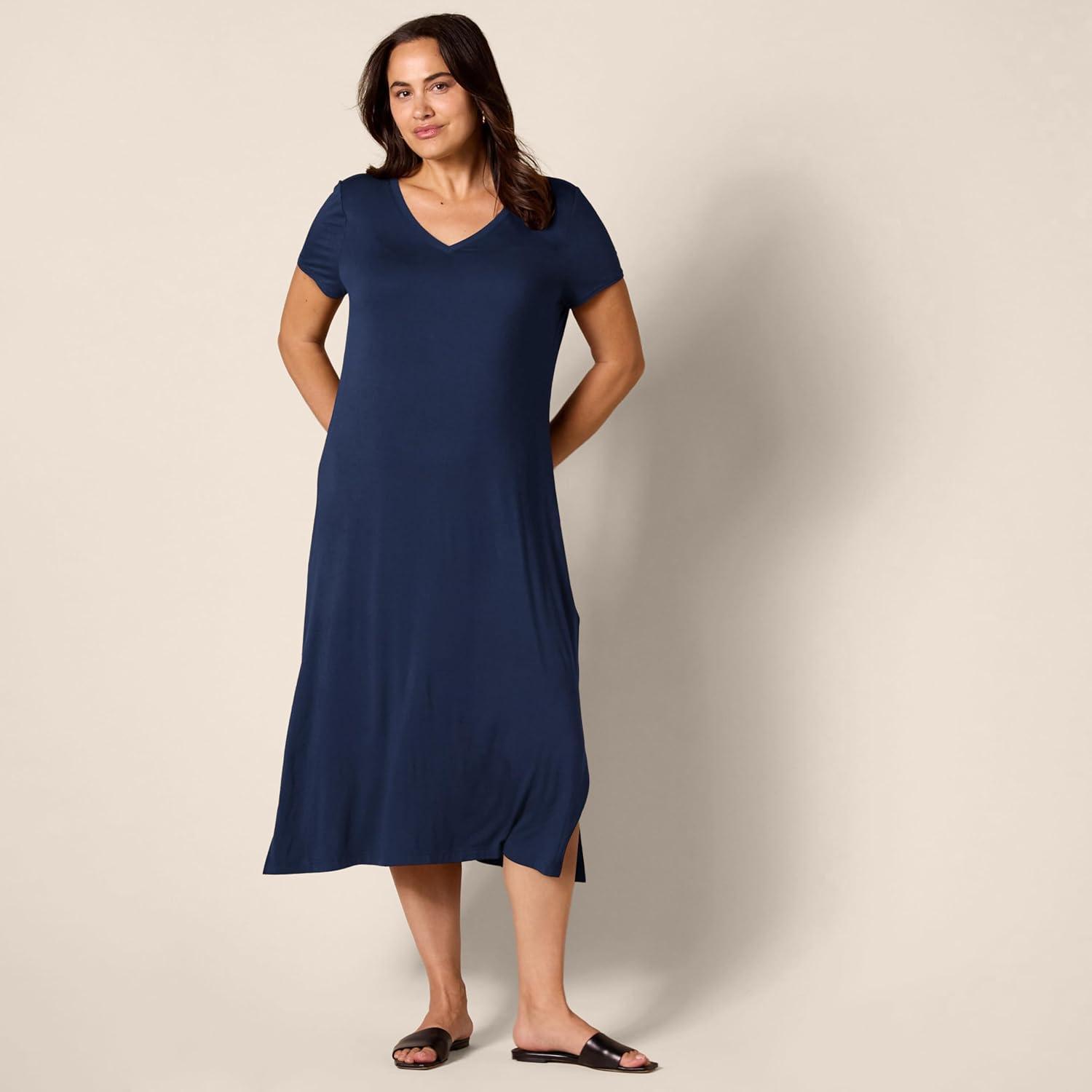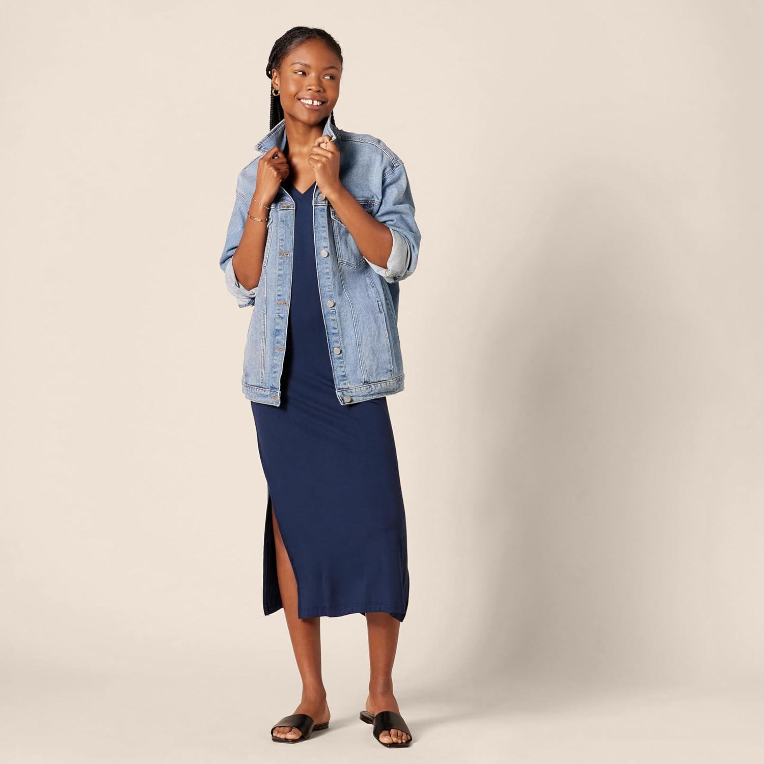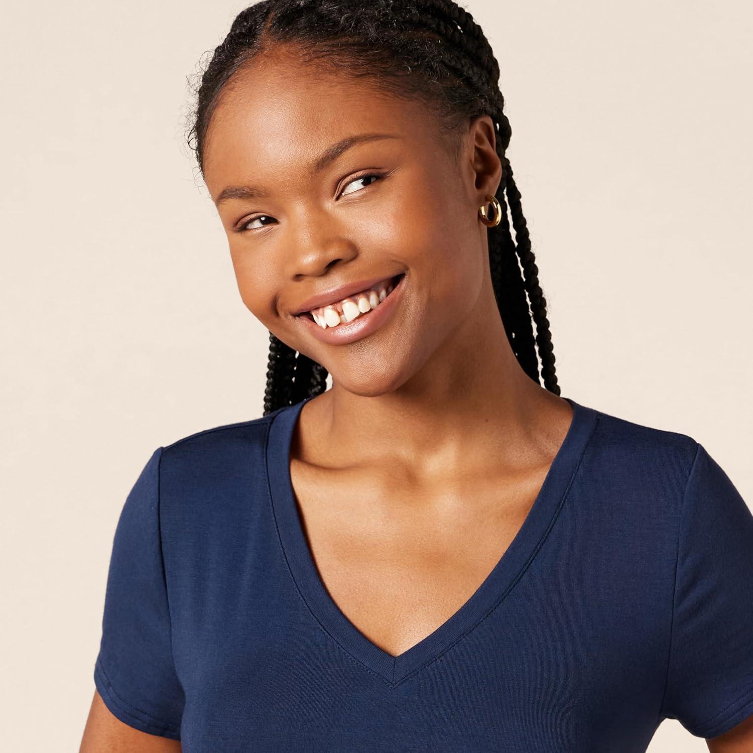 Amazon Essentials Women’s Jersey V-Neck Short Sleeve Midi Length Dress(Navy)